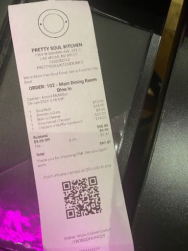 I am SO dissapointed! I've been telling my husband I want to try this place, my friend has enjoyed brunch here and I love supporting Black owned businesses and actually first heard about you in the Black Business Facebook group. So, he surprised me today and made a 7pm reservation. We arrived on time and was seated after the couple in front of us. The table we chose was wobbly but my hubby fixed it with a napkin under the short leg. We ordered the little BBQ drumsticks which were good and ice water (took a while), service so far was okay but honestly I (sadly) didn't go in expecting spectacular service, just great food. For dinner, we ordered the Cat fish soul bowl and the Ultimate soul bowl + cat fish. My husband immediately asked if there was any sauce on the food, the waitress said yes, hot sauce (the menu didn't mention sauce, it did mention once food is ready it has to be paid for). My husband is very particular about this for health and taste reasons so we wanted to be sure there were no mistakes. He told her to not put any sauce on his food twice and she responded "I gotchoo!" Our food came out around 7:45pm or just after. We immediately see hot sauce on his food and remind her that he said no hot sauce. She acknowledges this and implies the kitchen messed up. We tell her that he doesn't do hot sauce at all (mind you it's drizzled over all the food even on my corn bread). She repeatedly insisted for him to try it anyway because it's "not that hot", not even knowing why he didn't want any sauce to begin with. We were politely telling her, he doesn't do hot sauce or sauces, she continued to insist saying the fryers are off now and she can't take it back. After 3 times of trying to force my husband to eat something he didnt order, he tasted a tiny bit and said no. I asked the waitress if he could choose another protein at least, she said no the kitchen is closed. Before that, the fryers were off. She insisted the kitchen would not accommodate their mistake and there were ZERO attempts made to even try to make my husband's meal right or empathy shown. TERRIBLE! I have never experienced anything like this in my life. Granted they probably closed at 8pm but it wasn't 8pm yet, we had reservations, and they got his order wrong and refused to make it right because "the fryers are off" "it's not that hot" "they won't take it back" and "the kitchen is closed". Like C'mon! She did say sorry but after all of that, it felt less then genuine. She offered him NOTHING! Took his plate and left us there on our date night with 1 meal, empty water cups, and a ruined date night. At this point I'm so upset and asked for to go boxes and a water refill to go because I can't even enjoy my food after all of that and my man is hungry still. No one from the kitchen came out, no manager, no owner, no chef, nobody, no discount (I even forgot to ask if they offered Military Vet discounts), no dessert, no sprite, no offer for something else, no nothing! Just wow! She brought our tab over with my meal and our appetizers charges only and we paid cash and left. I couldn't wait to get out of there. This was so wrong on so many levels. So many other ways to handle this. Closing the kitchen without warning to your guest and before closing and making sure the meals are right is a great start. If this were a chain restaurant, I probably would've returned my meal, paid for our appetizer only and moved on for the evening and ate with my huaband somewhere else. But I wanted to wholeheartedly support yall still, but we deserved better tonight and Im not going to sugarcoat a bad experience just to be supportive because that doesn't help you or your staff. Honestly, even with the mistake (because they happen), I would've loved to give yall a rave review on how in spite of your mistake you guys made it right. You did nothing to make it right and that's why you earned this review tonight. My husband is a 2nd generation native of Las Vegas and we have family and friends that visit here often, I hoped I would be able to add you to our...