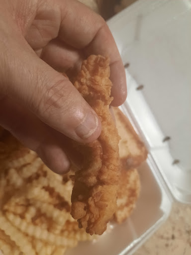 I want to start off by saying this is one of my favorite places to eat. I went through the drive thru, and ordered a box combo. I have NEVER seen strips this small before. I feel ripped off, all 4 strips were TINY!!! I will never eat this location again. I can understand 1-2 smaller strips, but all 4 is ridiculous / lazy! I'm from Oregon visiting, and I usually eat the Zachary location ( visit family that lives in Zachary ). They should of added another strip, if they are going to be that small. So disappointing, this was the last time I could eat at canes before getting on the plane to fly back to Oregon. I will think twice before visiting a canes again. I don't Normally write reviews, but felt it warranted time to write this review. Complete rip off for $12. As you can see the chicken is the size of my thumb, and I have...