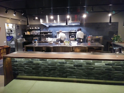 Location: Young, hip , trendy, ultra modern restaurant in an industrial park in the middle of nowhere. In pre-covid times it was conceived being indoors with 12 barstools on a long counter facing the open kitchen where 3 young combination chefs/servers prepared the food in full view of the audience. Similar to a suchi bar.