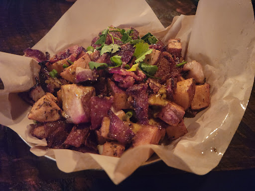 Read moreThis was my second visit to this location & although the pork belly is spectacular, everything else falls short. I was seated in the same table with a view of the exterior door & the kitchen entrance. Apparently the kitchen has a corner just out of view because aside from the noise of the door, I repeatedly heard someone shout "corner". The service was worse on this recent visit - at one point I thought my server had gone on break. When I finally did see him, he had a tray of cocktails so I can only assume he had an issue at the bar. From the time I requested to-go boxes until my actual departure, my server disappeared for extended periods 3 times. I spent nearly 25 minutes waiting on my server AFTER I had finished eating. As for the food, I started with deviled eggs. They looked amazing, but the amount of black pepper in the yolk mix was borderline ridiculous. I was picking large chunks of peppercorn out of my mouth after a single bite!! I decided to just take them to my neighbor when I arrived home rather than send them back to the kitchen...MISTAKE! Even my neighbor who loves black pepper was taken aback by the amount of it in the deviled eggs. When my server returned to take my entree order, I inquired about the black pepper on the fried green tomatoes. He stated he did not believe there was a bunch but he would check & let me know if he thought it would be a problem. I didn't see him again until after my plate was delivered. The fried green tomatoes however were covered in large chunks again of black pepper. I put those in the to-go container as well. As anticipated, the pork belly was phenomenal: so full of flavor & melt-in-your-mouth tender. The half chicken (for which there is an upcharge) seemed overcooked because the meat was quite dry & rather lacking in flavor. The perfect ending to this mediocre meal was the server returning to the table with my bill & the gift card my parents had given me (as well as my 4 siblings) at Christmas to say there was a zero balance on the card. I called Mom to confirm no one else had a problem with their gift card so I'm wondering if he even knew how to run it. The only interest I have remaining in this restaurant is their pork belly. I would order the pork belly as bulk meat if I ever had occasion to return. Otherwise, this restaurant...
