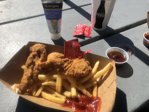 If it were possible my rating would be a 4.5 but a 5 is still fair in my book. My husband and I were visiting and stopped at siesta key. We needed lunch and decided to g. rab it at the Sun Deck. I read a few concerning reviews but we didn’t have many other options (as convenient) so we decided to give it a try. To start, I’ll name the pros- there were a few people in front of us but 2 ladies working the order/checkout so the line went quickly, and both ladies taking orders were so friendly and efficient. We ordered 2 chicken tender baskets, fries were included ($10 each). We shared a small coke ($3.00, large was $4.00). With tip etc. our total was $29 and some change. We didn’t wait very long for our food at all and both the chicken tenders and the fries were very high quality, tasty, and was nice and hot. My ONLY “complaint” is that it was just a bit pricey for a snack stand, but I realize we’re at a vacation destination and that tends to be the case at any other places. It just stung a little to spend $30 on lunch for 2! I’ll also add the view from the picnic tables up there are gorgeous and depending on where you are sitting, you can possibly see your chairs/umbrella/belongings! When we go back to siesta key, we will probably eat there again if the situation calls for it.
