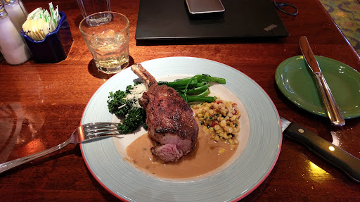 Read moreSweetwater Tavern(Americana) is one part of a group of nice restaurants which also includes Ozzie's(Italian) and Coastal Flats(Seafood). I was actually going for Chicago-style pizza at Uno's, which shares a food alcove just off hwy 50 and Gallows Rd, but had never been to Sweetwater Tavern, so decided on impulse to give it a try. Am I glad I did. When you walk into the place you realize just how large a restaurant it is with its open kitchen proudly showcasing the talented chefs and staff cooking and plating customers meals. There's a steakhouse rustic yet elegant feel to the place with its red leather seating and young servers in crisp aprons walking by the tables with plates of hot food and cold drinks on trays. Its all very professional. I ordered crab and corn chowder, a beautifully cooked pork chop(bone in) served with whipped potatoes and broccolini. They include a light creme gravy and a corn chutney to the side of the chop. So good! I would've preferred fresh asparagus but its really not the season so didn't ask. Just like the other restaurants they serve baskets of those wonderful Ozzie rolls with sweet butter. So good! I must say this chop has to be the best chop I've ever had! Ever!! I didn't get pics for you bc I hadn't planned to review tonight but now wish I had. I'll get pics for you next time I'm there. I may even order the flourless chocolate waffle with ice cream next time! Go check them out. You will not regret it. Be prepared though; the prices are high end. But definitely worth every...