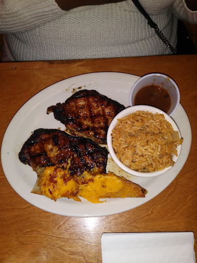Good service and great food! My party of 4 came and there was no wait time for us to be seated. The free bread that we were given after being seated was super hot and buttery. It also comes with a delicious cinnamon butter to spread on it. I had to prevent myself from eating too much bread and then being too full for the rest of the meal! For appetizer, we got the cactus blossom onion rings. This was huge and our party of 4 didn't even finish half of it. For main entree, I got the bone-in ribeye and the other people in my party got the sirloin and shrimp combo and 3-piece catfish. The 20 oz. bone-in ribeye was the most expensive dish, with a price of $26.99. Each entree comes with 2 sides included. The sides we got were green beans, seasoned rice, fries, sweet potato, mashed potatoes, chili, and caesar salad. The chili and mashed potatoes were exceptionally good. Seasoned rice is more so buttery than seasoned. Steak was cooked accurately to our preferences. Portions were quite large and we ended up taking 2 boxes to-go. Definitely recommend this place if you're looking for some good steak for a decent price that will fill you up.