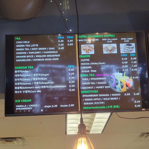 [Location/Ambiance]: I believe that the grand opening was a week prior so things are still being worked out for them. On our arrival that Sunday, there was one big group in the open table area, while majority of other patrons I believe were in the more cozy, private rooms with sofa chairs is the best I can describe it. On the opposite end, walled booth like tables that seats four via the the same sofa chairs. So far there's only a few tables and chairs outside. Noise level is quiet for the time being. We'll see as they progress. The once bare, empty plaza is slowly revitalizing with more shops being opened as per the signs of "coming soon". Supposedly this same plaza will have Sweet Hut, though in direct competition with this cafe. Management informed that they are still trying to decide whether they should stay open late, 1-2am. Maybe this gives people hanging around the Duluth area another option. For the time being ambiance is what I feel like is chill.