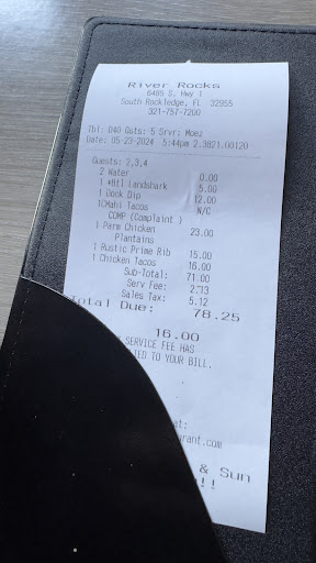 It is worse than Squidlips or Captain hirams The food was a two out of 10 at best My friend got blackened mahi tacos. And we got served old sour fish. Manager claimed it was possibly the tail of the mahi???? Parmesan chicken you get a 8 ounce chicken breast with Parmesan on it. With no seasoning. Your choice of fries, vegetables, ashed potatoes plantains sweet potato fries. You can only pick two sides. For plantains they give you four for mashed potatoes you get a 6 ounce scoop of instant mashed potatoes. Chicken is hard and chewy. Mahi Pokey bowl. The three ingredients are white rice, coleslaw, and one piece of grilled mahi. There is no sauce or any other toppings. Prime rib sandwich tasted more like a flank steak sandwich. And happy hour is only at the bar, not restaurant wide. food poisoning. Service fees. And a tip. $80 later me and my two friends walked away, hungry and not pleased. After bringing it up to the manager, he said I don’t make the prices we are dealing with inflation crisis basically, sorry that your meal was bad. We hope you might return again. crowd is largely old retired white people. It was hard to spot a person under 50. And a different race. I have better food at my old high school. cafeteria. I have had better service from a vending machine. I got robbed without a gun. Save yourself the trouble and go to a real Riverside restaurant. For the same prices, you can get double the food, double the flavor and double as much fun. At Captain Hirams’s in Sebastian. or Squidlips at Eau Gallie. The fresh catch is not fresh. The waiter screwed up the check. Never got a water to drink. And I’m just writing this because I haven’t had such a bad experience with a place until until today it is just actually surprising how angry they got me and I really don’t get angry lol. I’m sure if you’re old and white and you live in Suntree you probably enjoy this place but if you want the younger crowd to ever join your regular crowd. Gonna have to do something. My friend got a piña colada and she said that she didn’t even taste any alcohol in her drink. She also said that she felt like her stomach hurt really bad after she ate and she also got the Parmesan chicken. Don’t be fooled by the looks on the inside and the jazz music and the live bands, you can get much better food from Dollar tree. And likely better service. Would like a refund. Service fee what is that? Who am I giving the money to. Lobster crab dip, taste like it was microwaved. Ton of salt on one chip none on the others, chip tasted like it was cooked in old Oil. Water taste straight from tap. Either that or ice machine needs to be cleaned out, super strong minerally taste to the water. Waited 3 months for the perfect opportunity to come and this place is great if you have no tastebuds and are on Medicare.haha I’ll let you know if I throw up any...