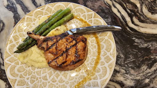 The main courses offer a diverse selection, from the perfectly seared scallops to the luxurious tomahawk steak, each dish is prepared with meticulous care. The halibut, although slightly overdone, showcases the kitchen's ambition, hinting that a slight tweak in cooking time could elevate it to perfection. Meanwhile, the risotto with its generous helping of mushrooms and robust flavor profile, and the expertly cooked pork chop with its vibrant chili rub, are clear indicators of The George's commitment to quality and flavor.