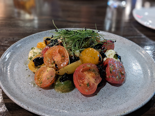 The Porter's House is a great place for a date night. The vibes are really cool. The staff are all amazing, from the greeters at the front door to the wait staff. Each one was so attentive and genuinely cared about us. We made a reservation and showed up a little bit early and tables were available. We were told we could sit wherever we wanted in the bar area, so my wife and I chose a table against the wall. The person who brought our menus over next said we looked a little cramped and wouldn't we want to sit in a more open table instead? Yes we would, thank you! Because of that little bit of paying attention, we had a much more comfortable meal. Our waiter was incredible with the way he described the food on the menu to the way he poured the wine at our table. He was a bright highlight of the evening. The Porter's House is a steak house. For some reason, my wife and I both went with seafood. In retrospect, that was a mistake, as we should have stuck with what the restaurant is known for. I started with a tomato and mozzarella salad, which was quite tasty and fresh. I liked it best of all the food I had. For my main course, I ordered salmon over risotto. The risotto was bland and under seasoned and not very flavorful. The salmon was fine. It was cooked properly and tasted like salmon. But nothing about it stood out or made me think I would order it again. To share, my wife and I ordered the Brussels sprouts. They were cooked okay and were drizzled with a balsamic glaze. But the sprouts just didn't have a lot going for them. Maybe they were baked in the oven and therefore no charring took place to enhance the flavor or texture? Not sure. But we both agreed that something was lacking in these sprouts. Other restaurants in the area do phenomenal jobs with their Brussels sprouts. I wouldn't recommend them at The Porter's House. Will we give this place a try again? Definitely. The staff was too good and there is too much promise in the items on the menu that are in the restaurant's wheelhouse. The food was disappointing during this visit, yes. But everything else about The Porter's House screams greatness. We'll just have to remember next time that when going to a steakhouse to order the steak.