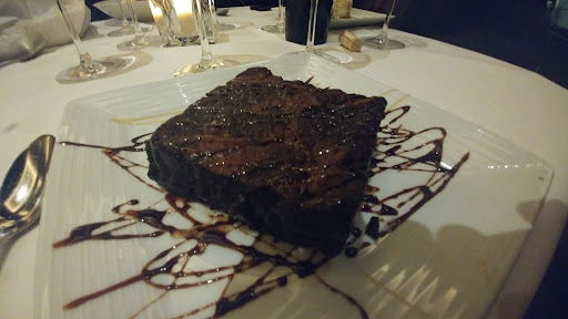 For dessert, we had a cheesecake, a brownie, and bananas foster. I had the brownie, and it was actually very good. It was fudgy, rich, and definitely would benefit from being ordered a la mode. My one issue was that it wasn't warm! The brownie was delicious - but served cold? This made no sense to me. Maybe some people like cold brownies.