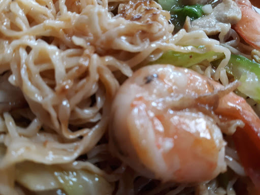 What happened to this place? We used to come here frequently many years ago when we shopped for Chinese food next door. At that time, the food was higher quality, fresher and service was better. Came in today for lunch and ordered the combination chow mein dish @ $8.50. The restaurant was about half full at the time so it wasn't like the waiters were struggling to keep up with the orders. My dish was a little slow to arrive but it did arrive hot and I am giving it a star here for the large portion size. I didn't order the crispy version of this dish but the noodles around the edges were crispy anyways. I poked around to dig out the noodles hiding under the meat and veges. I was expecting to encounter a stir-fried texture but was disappointed to find them waterlogged and soggy instead. The meat was ok, a little bland but nothing that couldn't be helped along by the various condiments arranged against the wall like sriracha, vinegar, Chinese chili sauce, etc. Biggest disappointment was the shrimp. The thing about shrimp is that it has to be really, really fresh to taste good and that just wasn't the case here. In addition, the proper way to prepare fresh shrimp includes thoroughly removing the black line that runs along one side of every shrimp. That line is the shrimp's digestive tract so what you are removing is actually shrimp poop. You can see where I am going here. The few shrimp that were on the plate all tasted yucky and when I found out why, I stopped eating them entirely. The broccoli and other veges were good - crispy and fresh so another star for that but all in all, I will probably pass on TK Noodle...