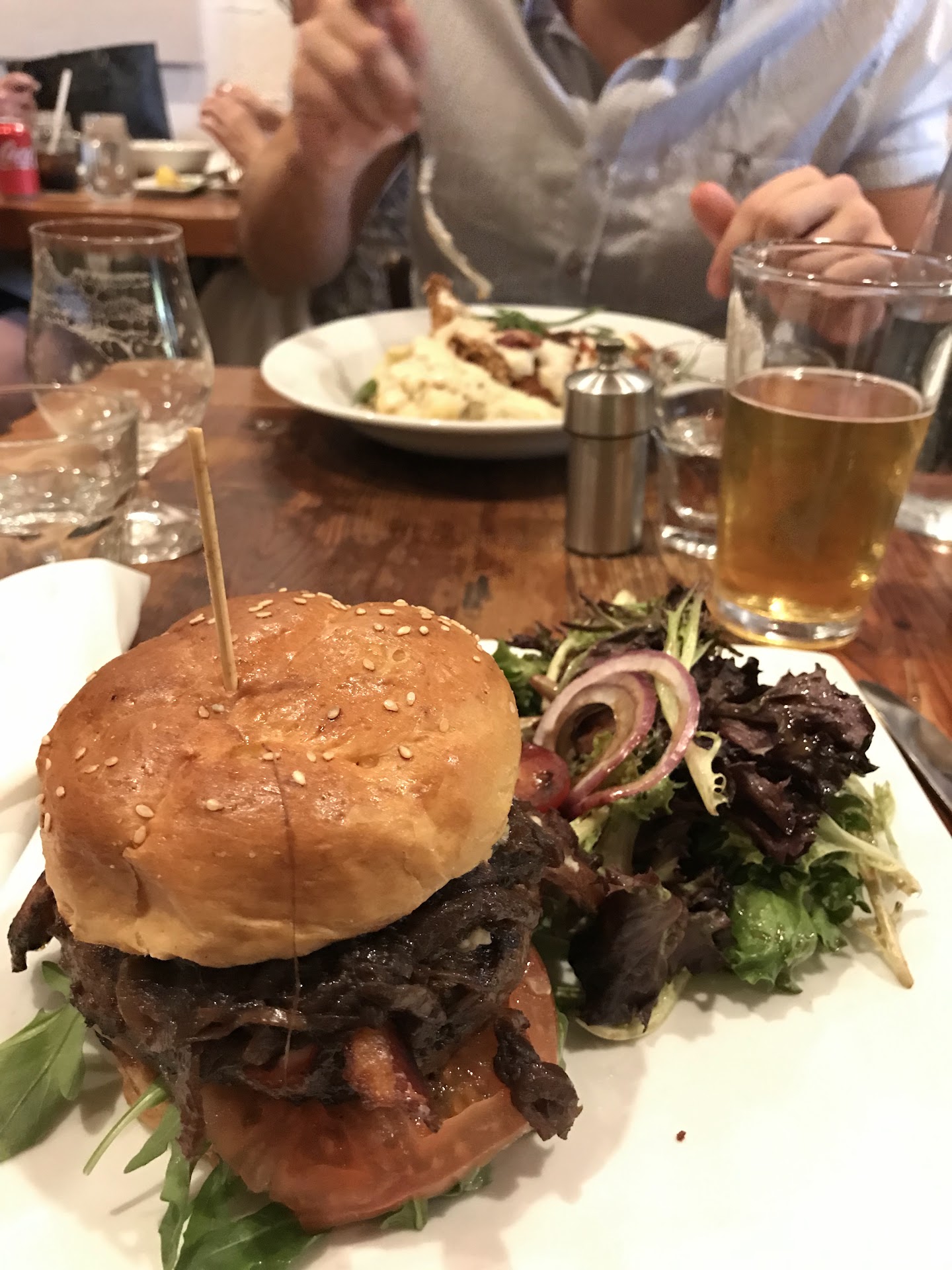 We arrived, sat outside, and waited quite a while for a server to show. The restaurant did not seem too busy as we arrived pretty early for dinner. We ordered our meal, waited a normal amount of time for it to arrive, and the server brings out a bowl of soup and a shrimp salad that we did not order at all. The server seemed confused (it was not the one who took our order) and then realized it was for a different table. The people at that table called him over and he served it to him. Next, our food arrived and was decent and fresh. It wasn't something that was truly "wow" enough that I would want to go back, but it was a nice meal and well prepared.