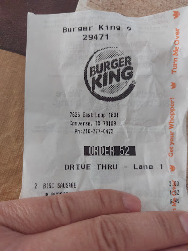 Read moreI would rate service as a 0 but that's not an option. I recently had an unfortunate encounter at Burger King on 7626 East Loop 1604 , which compelled me to share my experience. As I approached the drive through line I noticed that no one had attended to me during my wait in line, so I politely approached the young lady behind the counter to place my order. To my surprise, she responded with sarcastic attitude and claimed she couldn't hear me, despite my clear attempt to communicate.
