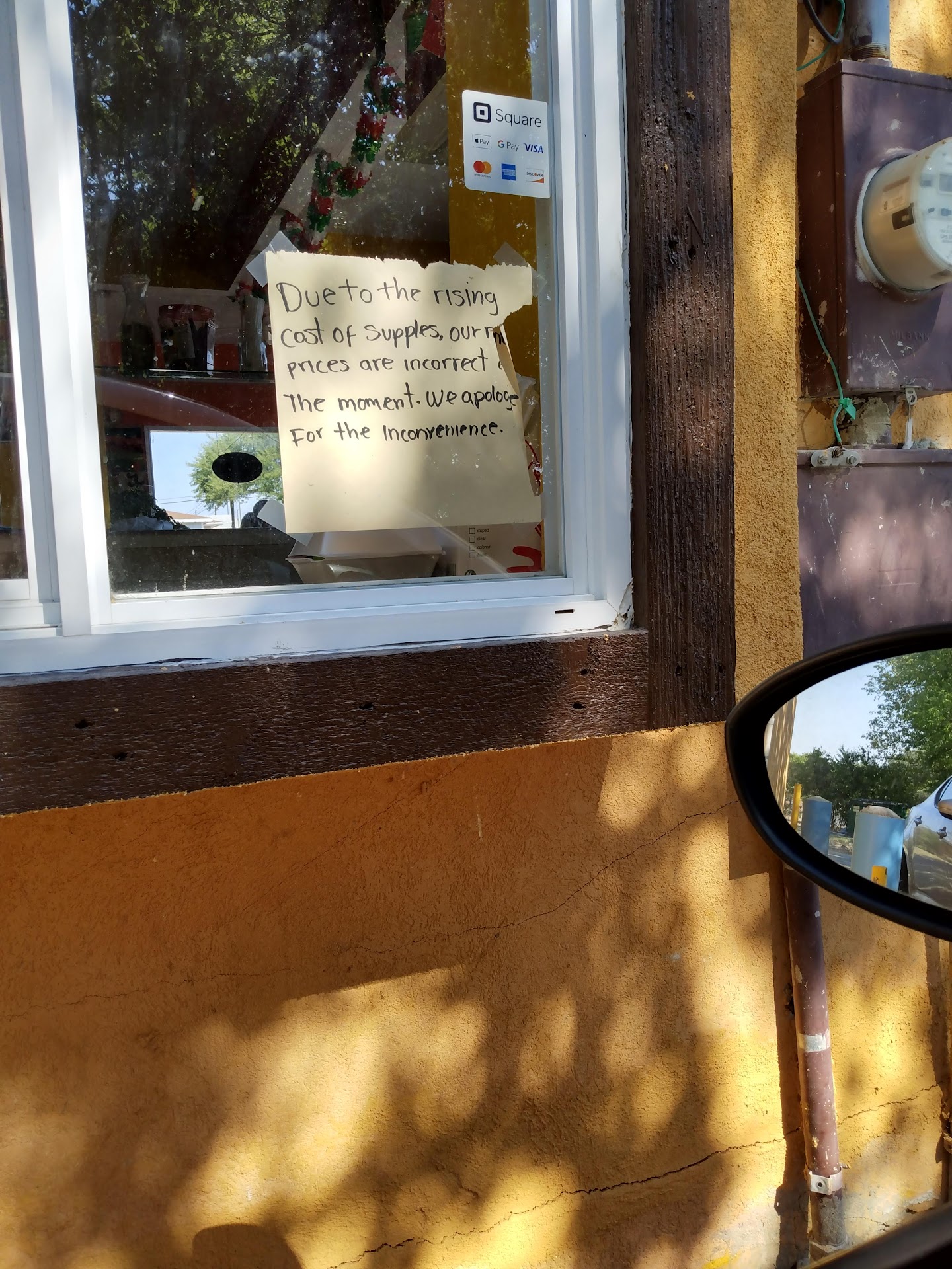 Read moreMy daughter found this place. I think it will be my favorite new spot. We spent $24.14 and it was worth it! Our order was 1 chicken fajita huarache, 1 potato ranchero taco, 1 mijas taco and 1 chorizo and bean taco a Mexican coke and a sweet tea. My family said the tacos were good. I was too busy enjoying my chicken fajita huarache to try anything else. Let me say the flavors are layered and piled high. (None of this, cutting back on your toppings but raising the price on you happening here) I didnât even get half way through and I am stuffed like it was thanksgiving day! I am looking forward to going back and trying a different menu item like a torta or something of their large variety sweet snack menu like a mangonada. My sweet tea? Well you can come here for the tea alone! I could tell at first sip that they must have a reverse osmosis system! I took off the lid and saw the beautiful clear ice swimming in my tea and I feel in love. The ice is perfect crunch size too! She also asked if we would like them open the Mexican soda before handing it to us. I appreciate that because most places just open it with out asking. The service is friendly and fast. I could tell that our food was cooked to order but, it didnât take too long. Just pull up to the speaker and turn off your engine so you donât have a hard time ordering. This place just got a new...