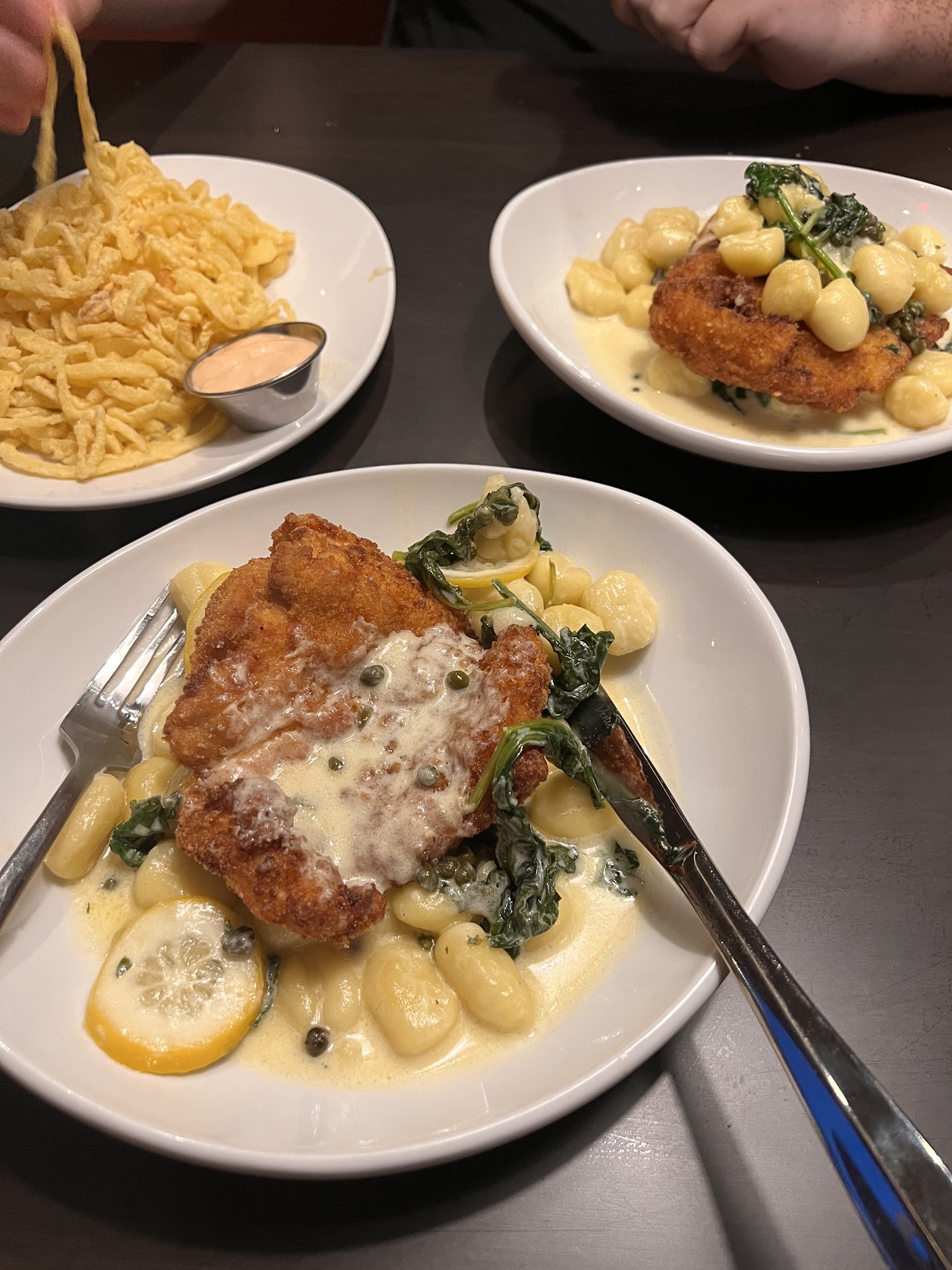 We decided to stop in for a late lunch (7/1 @ 2:30 pm), and it was almost empty. We were seated after a few minutes of waiting (for a staff member to greet us — which wasn’t a big deal at all), and got our drinks relatively quickly. Our waitress was very kind and did try to make sure everyone could eat safely. While waiting on our entrees and appetizers, we overhead the kitchen staff loudly complaining about having to accommodate guests with food allergies (rolling their eyes, sighing, and saying that customers here have “every allergy under the sun”).