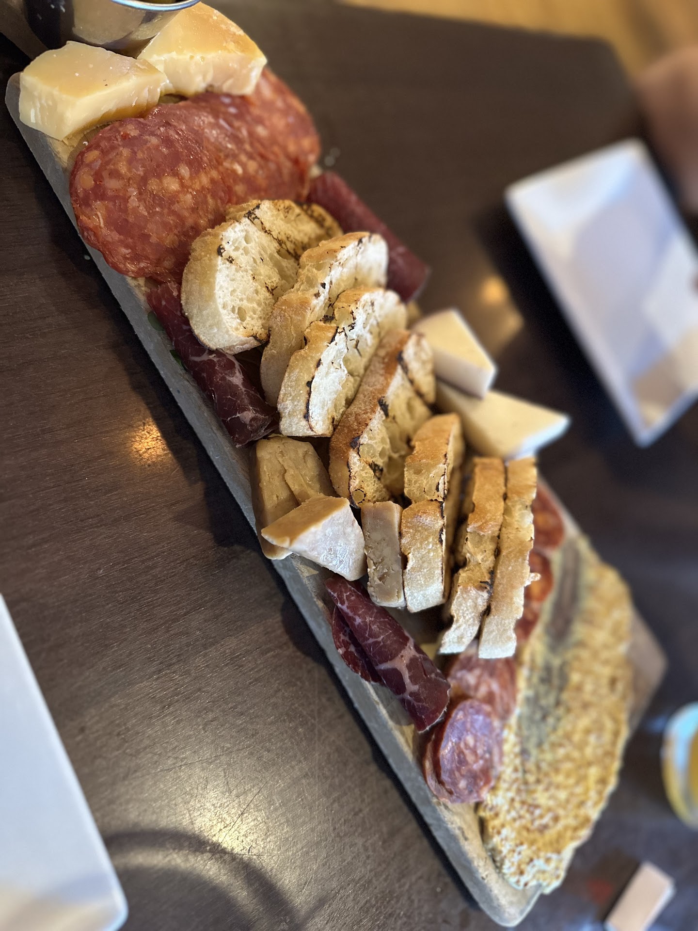 Let's start with the appetizer, the chef's choice charcuterie board. This delectable selection of artisanal cured meats and accompanying accoutrements is truly a work of art. The board is adorned with an array of flavors, textures, and colors that captivate both the eyes and the taste buds. From the velvety slices of the chefs choice of meats, each component is carefully chosen to create a harmonious symphony of flavors. The accompanying crusty bread, and creamy cheeses elevate this charcuterie experience to new heights. It's a delightful journey through the world of cured meats and a delightful start to your culinary adventure.