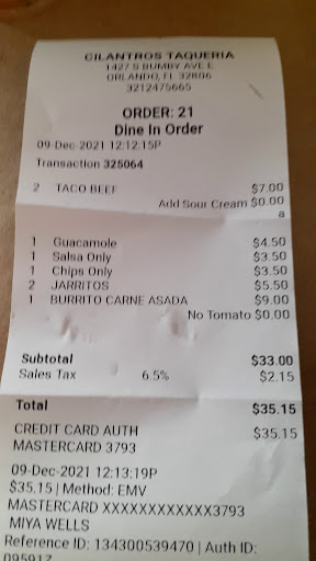 Read moreI went in to order a taco salad for take out and asked what was in the salad. I was told spring mix, cucumber, tomato, and your choice of meat. Next, I asked, so no cheese, no guac, no salsa, no sour cream? I was told, yes there is cheese on it and it comes with a side of salsa. Honestly, I wish I had walked out right there. Instead, I ordered a side of guac. As the small portion of Guac cost $4.00, my bill was $13 to $14 dollars. As he was packaging it up, I went over to look at it. He opened the container and all that was visible was the meat. There was plenty of meat alright, however no cheese was visible and the salsa container fit maybe 1/2 oz. When I inquired, he offered me another 1/2 oz of salsa and a 1/2 oz container of cheese. Upon eating the salad, I found one tomato slice and one of cucumber. Never did see cheese and the abundance of pork was tasteless. It was the worse taco salad that I haver had and costed more than I have ever paid for one. Taco salad traditionally comes with sour cream, guac, and salsa among other veg ingredients. People that order taco salad aren’t ordering it for the meat. Rethink it Cilantro whatever...