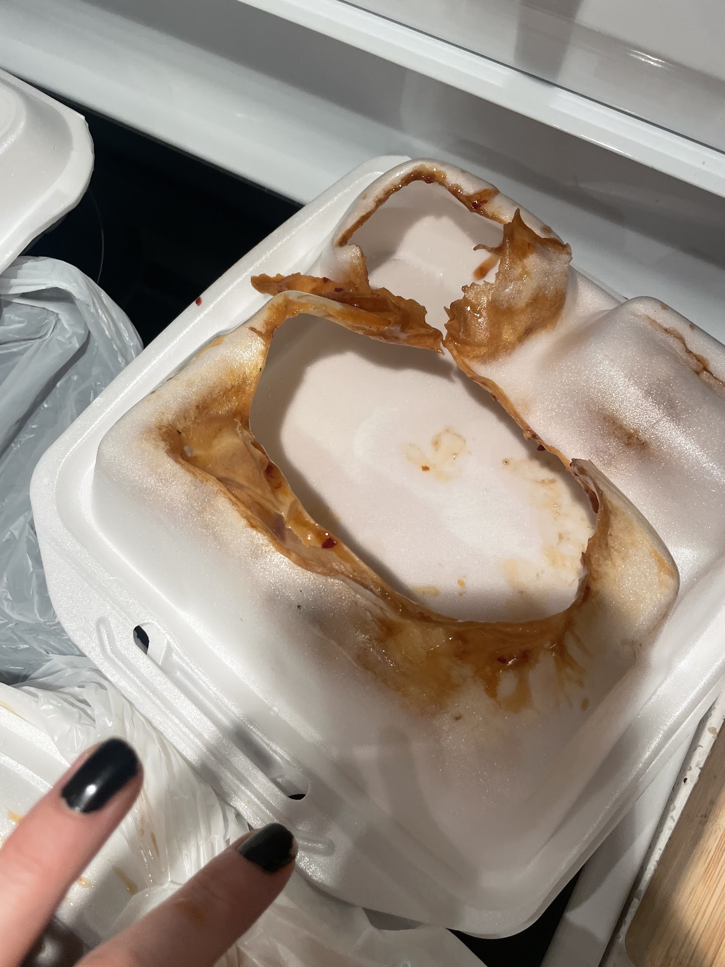 Read moreI WOULD NEVER RECOMMEND THIS PLACE đđ© This our first time and last. Our to go is in a Styrofoam container which will be cold by the time we get home to eat. Styrofoam containers are cheap and non-biodegradable. My fiancĂ© asked for an extra fortune cookie and he was told he could only get two because their are only two guest. Iâm sure one extra fortune cookie will not break their bank. The General chicken sauce is really orange looking. This is what I always order at Chinese restaurants and itâs never looked that orange before. Although the egg roll was good however I ate it on the way home before it got cold. There where no napkins, disposable silverware, and no condiments (like soy, duck sauce, hot sauce). Any other time Iâve ordered to go there were at least a few packs in my bag. Lastly the egg rolls where thrown in the same box as my General Chicken on top of rice. Just a really BAD presentation of food. Now guess weâll get us some plates, forks, and napkins and see...