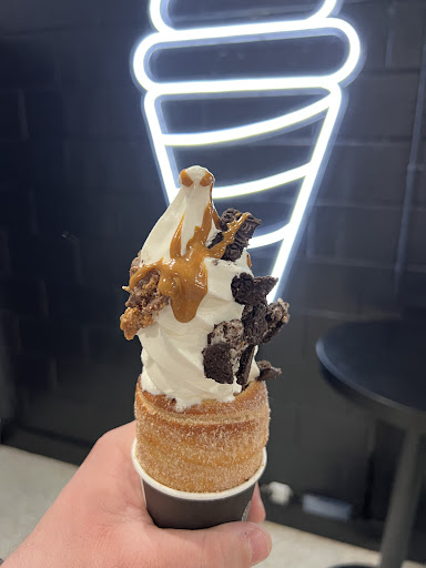 Read moreThe concept and tastes are fantastic. The "cones" are unique (think upside-down beehive, lightly crispy outside and chewy inside) and dusted with cinnamon sugar or limited-edition things like ground coconut. Inside the cone is lined with peanut butter, "cookie butter", or Nutella. The ice cream rises above like the classic cone treat, and can be topped with toppings and sauces from their list.