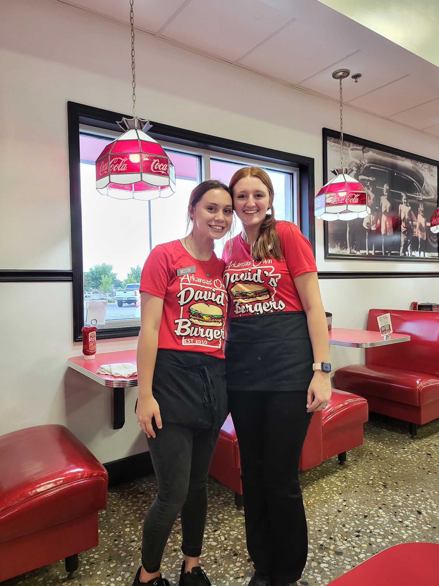 Read moreWhat a wonderful experience! My boyfriend and I were greeted at the door with a big hello and pleasant small talk by Micayla. Then she happily took our name and order with the biggest smile! After we sat down we was greeted by Michael with a smile, who asked if we had ever eaten there. I had not. He proceeded to explain how they made their fresh cut fries and how this was a family owned and operated business. He then pointed to the pictures on the wall telling us who was in them. Avery stopped by our table as well and offered to refill our drinks. She also told us how wonderful the ice cream was and offered to get us samples. The people who work at this restaurant (Amity Road in Conway, AR) are so welcoming and knowledgeable about the backstory. This is my new favorite burger joint. 😊 Did I mention the decor is fantastic! Red booths and retro table and chairs. My favorite part was the Coca-Cola Tiffany style hanging lamps over each booth along the walls. The music playing takes you back in time to the good ole days. If your looking for a great steak burger that's juicy and full of flavor with a soft bun and fresh cut fries then stop by David's Burgers in Conway!! Don't forget to ask for some of their house made ranch if you like to dunk your fries 😉 This is the way every business should be ran!! Thanks Micayla, Michael and Avery!! You guys are super sweet....