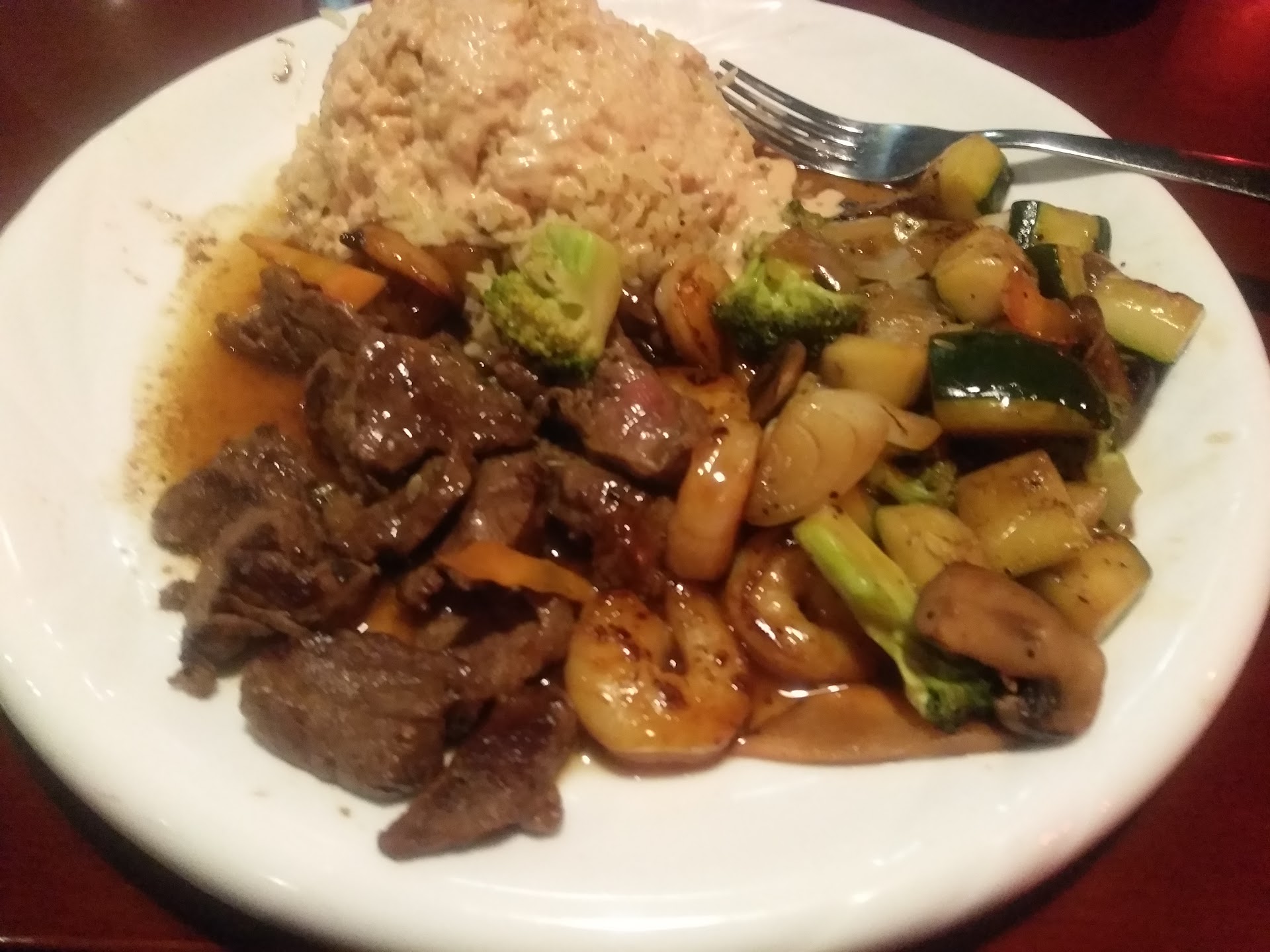 Read moreOooook there's a lot to cover. Atmosphere was good. I sat at a booth and it was peaceful and relatively quiet for all the people there. My entree(steak and shrimp hibachi) came with a few appetizers - namely an onion soup(broth, mushrooms and onion curls) that was uninspiring but still tastey. Shrimp-flavored rice crisps that I enjoyed but couldn't help but assume they came out of a snack sized bag somewhere. And what I find absolutely queer because so many chinese-themed restaurants serve it. A "side salad" that is literally ONLY a bowl of iceberg lettuce and what ever dressing packet you want. Why? Anyways. On to drinks. They don't offer drafts on tap and their bottle selection that was decent. But a place that has the word 'bar' in the name should have a varied selection. Not just a decent one. And definitely not one that is wildly overpriced at almost five dollars per bottle regardless of origin point. My server(Alexis) at least was a treat. Friendly and all smiles who got what I needed for me with prompt service. Should I ever come back I'd ask for her again.