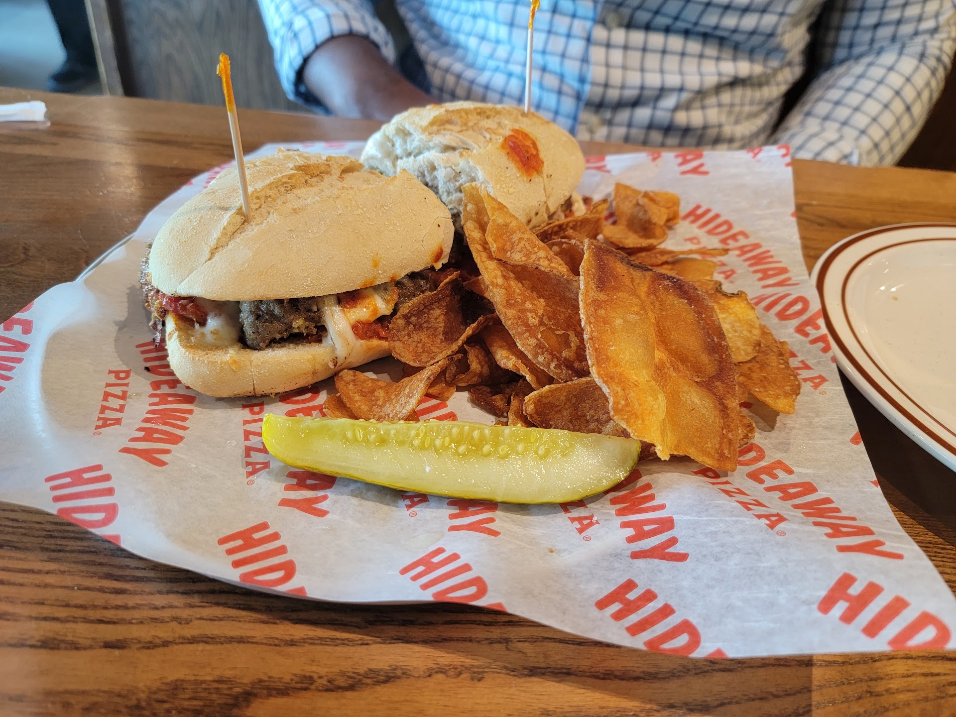 Read moreUpdate 9/17: Went by again with same friend after a cruise and this time the waiter kept bringing refills without ice in a regular/tall cup to refill our plastic to-go cups they give you from the start. This meant the ice kept melting and there wasn't much in there by the time a few refills came in. They brought my friend Ranch after he said "no" to the question, which isn't a big deal on it's own.. but they put mushrooms in my food when I specifically asked for no mushrooms. The garlic breadsticks and sauce were much hotter than the last time. Way better this way. They also gave us mints this time.