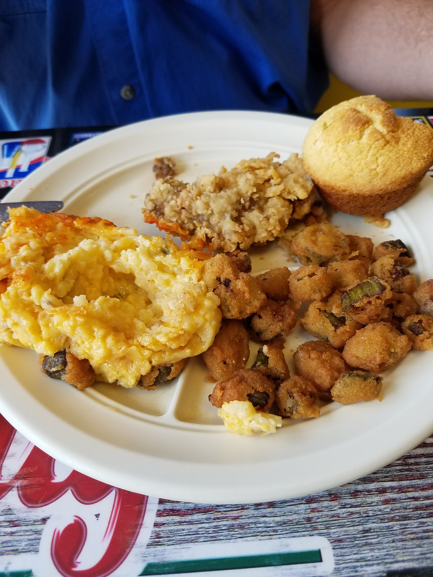 Read moreA little past Little Rock 🎶 in Conway, sits this little home cooking spot, only open M-F 11-2. Now, you know a place must be good if it’s only open 15 hours a week! The line was 40 people deep, wrapped around the inside of the building, waiting to order cafeteria style offerings. I got the veggie plate: squash casserole, green beans, broccoli and cheese, and white beans with jalapeño cornbread, finishing it off with cherry cobbler. Now, I’m a big fan of southern style veggies and they were all delicious and flavorful. Wasn’t a fan of the cherry cobbler, tasted like your run of the mill cherries with cake like breading and not pie crust. I’m more of a streusel kind of gal anyways. Should have gotten the peanut butter pie, but…. I gotta keep my heart outta this and both hands on...