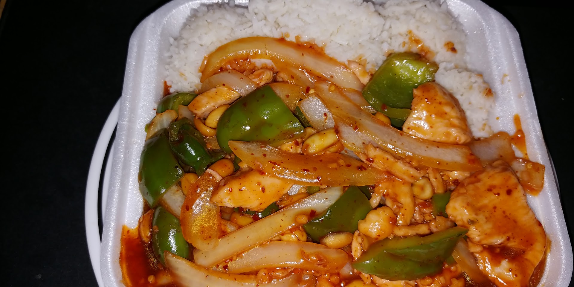 Fast service. Large portion for great price. Good customization options and they make everything fresh. Used to eat here years ago and it seemed a lot better. Just seemed more flavorful and spicy (I ordered spicy, which is the hottest of the 3 options of Kung Pao you can order here). One of my first bites of chicken had a weird seafood taste (I hate seafood). Ate a couple more than hit a really fishy smelling and tasting piece of chicken. Also some thing strings of chicken that looked unusual. Bell pepper and onion was excellent as well as the peanuts. I really love peanuts in that spicy sauce. Unfortunately, I ate less than half mainly because of the strange chicken. I mostly just ate the bell peppers and peanuts :). If I could rate service on it's own I'd give it a 5/5. Most "Chinese" places I've been to were in LA county and the employees always seemed to be rude. This place doesn't have a rude employee taking your order. It's the quality of the food that...