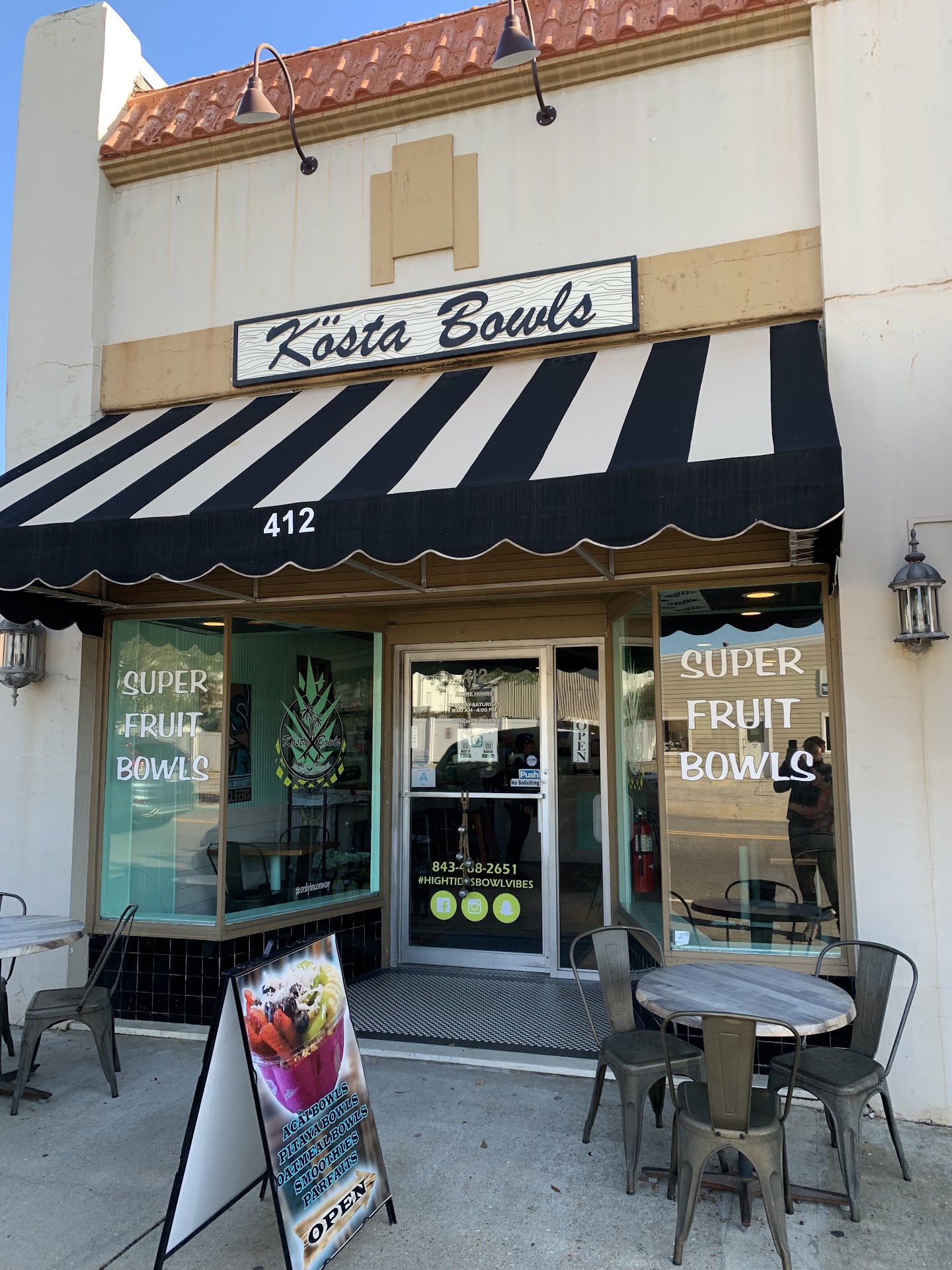 For the sake of desirable communal health, Kosta Bowls will be your custodians. Clients surrender ourselves to receiving generously sized portions of refreshing Godsend of Manna in a veritable oasis of health-food stores. Ah, Conway, true land of milk and honey for us at-home patrons strolling bi-weekly, unwittingly in need of a higher power performing unspoken weight management under divinely proscribed increasing girth cinching providence upon us. God help us! The Atlantic Oatmeal's so hearty, I'll shovel it in two hours before noon knowing I won't need to eat anything again until late-night. A tepid, neutral room-temperature lodge-like setting, Kosta Bowls being a shadowy, mostly naturally lit ambient, it cloaks the quickly rotating, equally multi-faceted interchanging helpers: Serving, cleaning, administering to palming tenderly whirring blenders imbued with a sterile unseen distance separated by a doorjamb as a barrier. The unreality is of the blenders being within arm's reach behind the counter, but the unreality is that the sound is as if inside of a wet room without noisy echoes. Every sound has been isolated and softened, as if in a 1990s sitcom where everyone takes their turns and everything has its place. The dense driftwood tables along with equivalently massive floorboards make a sharp staccato of anything that makes noise as screeching chairs slide back... everything is intentional, echo-located to embrace the elbows and overstuffed coats of a never-present crowd... where are all the customers?? The humble entrance serving as the dining hall with the money-makers grinding methodically, ice and all, into smaller-and-smaller, is laid out as though you could touch the far ends of the restaurant by simply outstretching your arms, its beauty in its simplicity, like an old-timey diner. The Tween-Cherubim Helpers lull lazily between clients, singing along to coffee-house music, 'equally attuned to jazz or classical... It's a great place for kids. Driving down Main Street, you always see a parent with a stroller in the restaurant's outdoor seating. I predict a new detail on the menu of a zero calorie full sugar replacement. But, that was the complaint about Manna, they say it's kind of insipid. Yup-yup....
