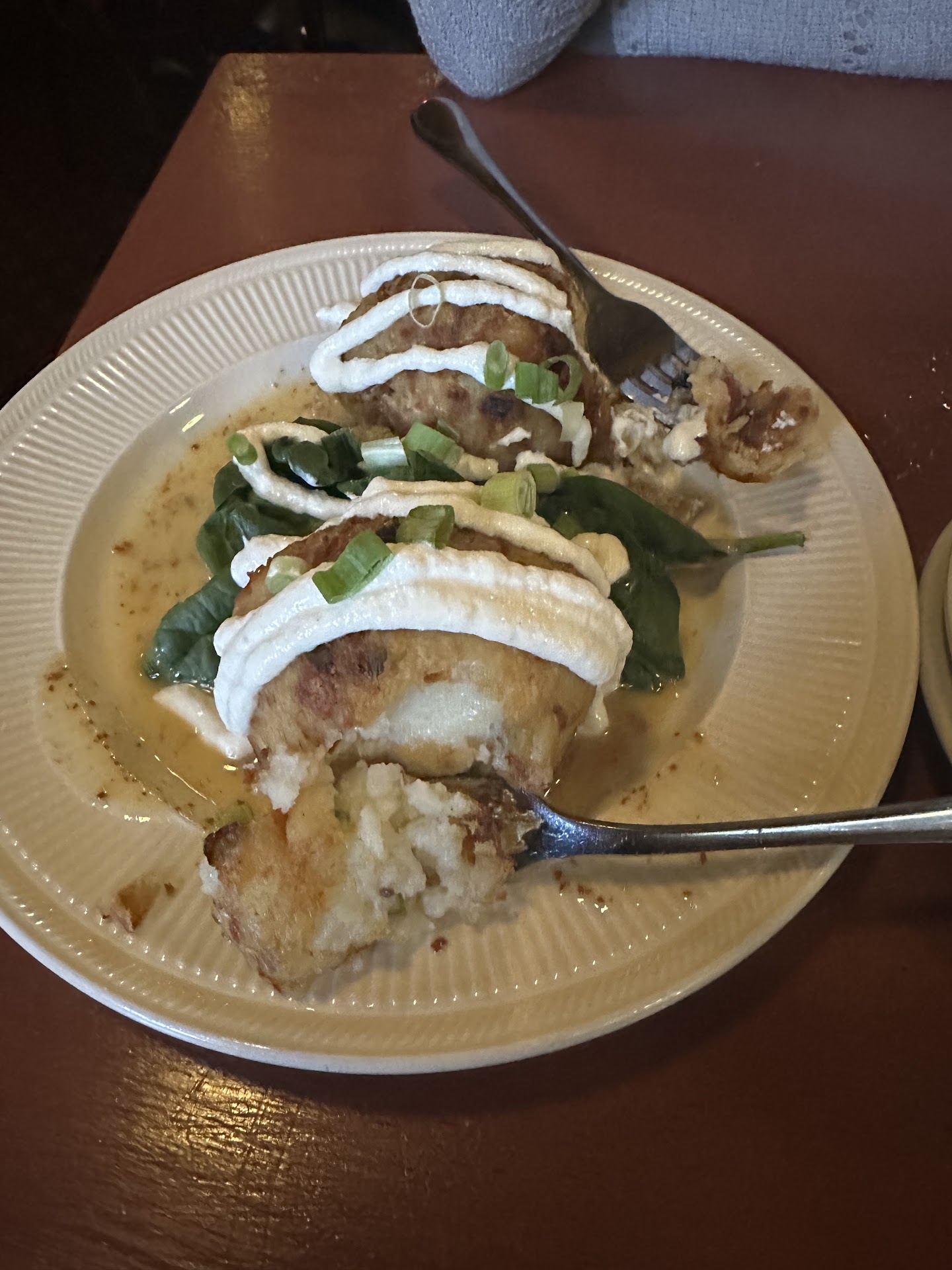 The presentation of the potato cakes is equally impressive. Served over a bed of dressed baby spinach, they create a visually appealing dish that instantly whets the appetite. The creamy horseradish sauce adds a tangy and zesty element that perfectly complements the richness of the potato cakes.