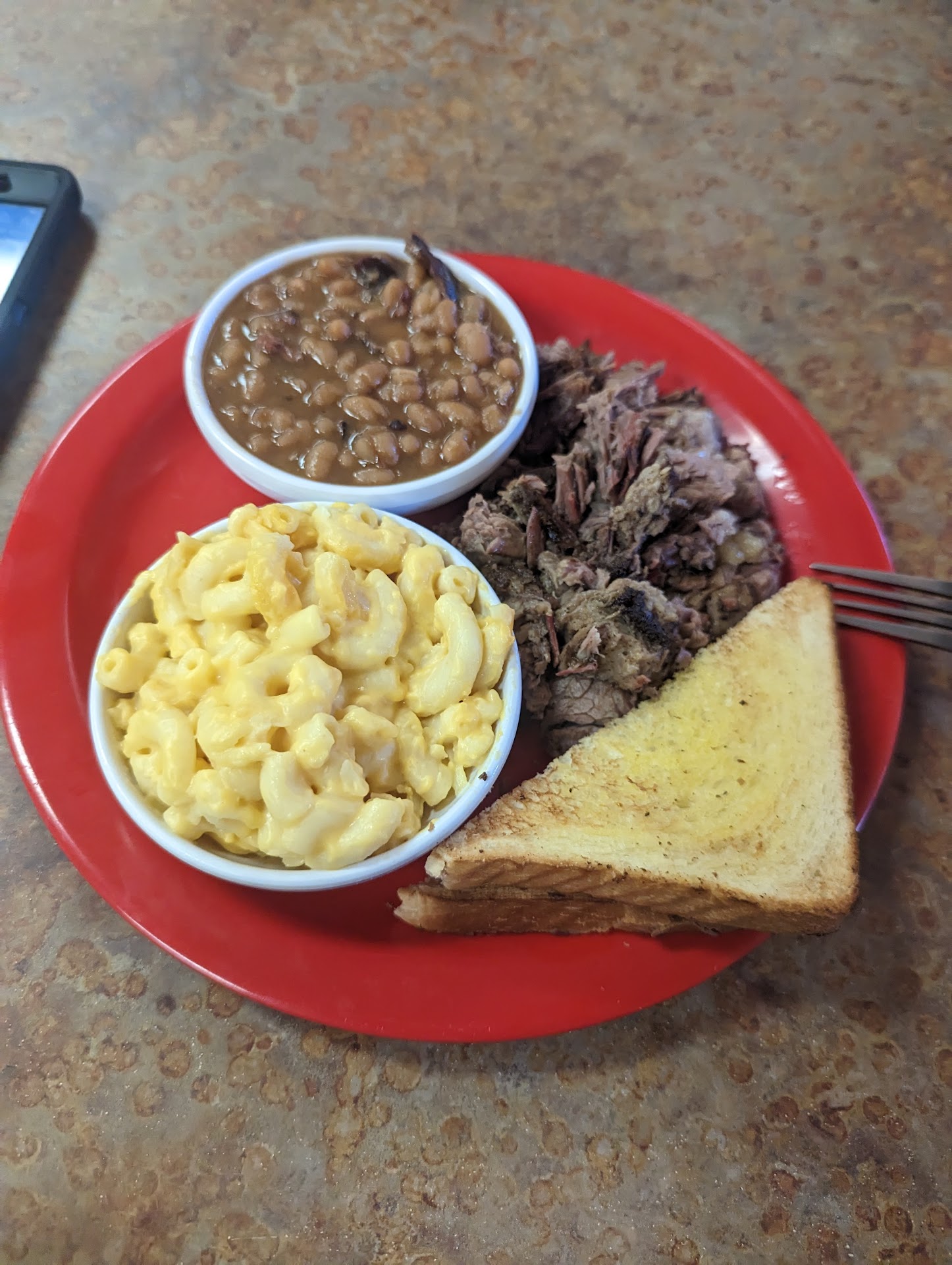 I went with the chopped brisket. Very tender. Lots of flavor! The baked beans had some type of meat in them. Could have been the brisket or a burnt end. Bear small pieces of meat, but it really added to the flavor with the beans! Mac and cheese was okay. Great choice for kids. I would try a different side next time that I go, but the baked beans will probably be something that I will always get with the platter.