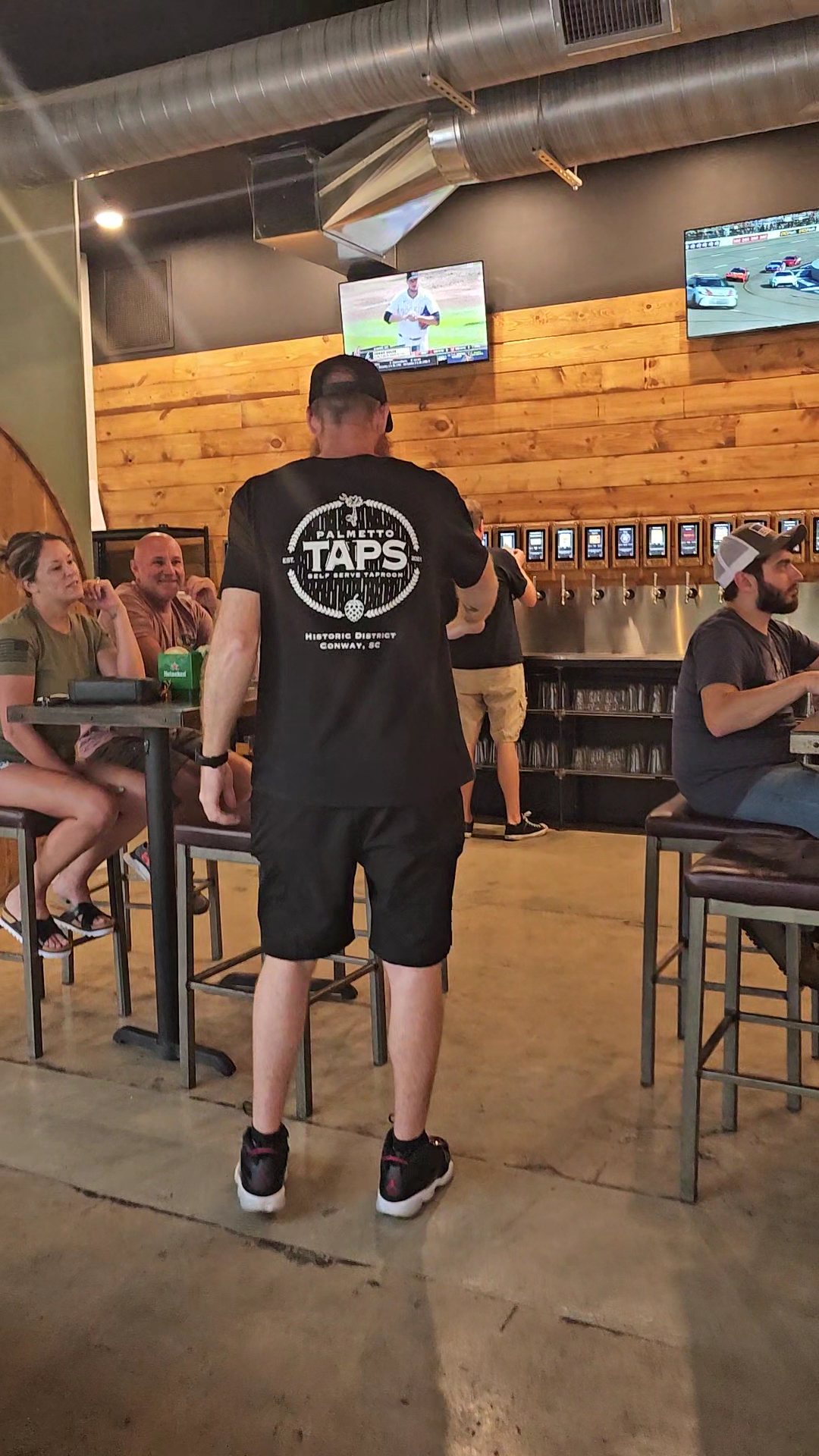 Palmetto Taps is one of the best spots if not the best spot to come to Conway in the last few years. The atmosphere is laid back yet a fun time. They got shuffle board, darts, and other games to enjoy some drinks and pass the time. They have either live music or an electronic jukebox everyday. The drinks are fairly priced and it's a self serve tap bar so no need to wait on a server you can drink at your own pace. The owner and his family are a blast to hangout with and the spots a great place to unwind after a long work day. I would highly recommend stopping in if you haven't already and if you're just in town visiting friends or family it's got to be on your list. They are in the works of getting a kitchen of their own but in the meantime they have food trucks now and then and you can always bring in outside food. Overall I'd rate it a 5 star spot to spend your nights...