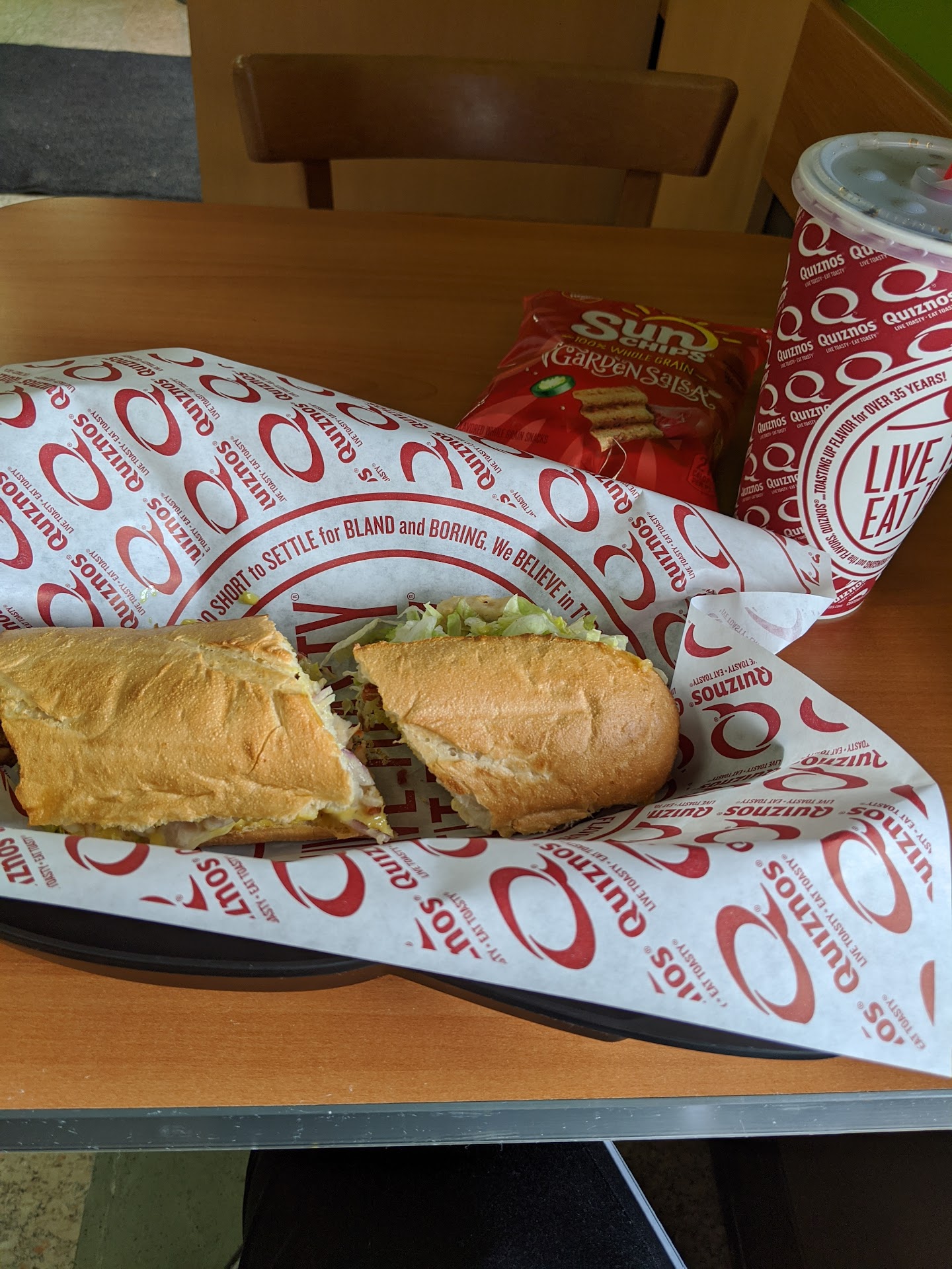I was having an Italian Sub craving, and remembered the last time I ordered one from Quizno's, it was very good; the best I'd had in Conway. I walked in and there was a lady and her son, and one other person ahead of me. The lady had a pretty decent order, with probably four or five sandwiches. The manager is the only one who was working, so it took a little longer, but not long enough to bother anyone, in my opinion. After he completed the order, a lady came in who I suspect may have been his wife, but am not positive about that. She began to "suit up" and help the cause. The man in front of me got his sandwich quickly. The manager apologized for the wait; I told him it was no big deal at all, no worries he was by himself, and that it could have been much longer. I had my mind set on the classic Italian, but the lobster/seafood salad club with bay seasoning was doing its best to convince me otherwise. I asked the manager how long the lobster/seafood salad sandwich would be on the menu (sign and online menu both said limited time). He said it has been added to the menu permanently. So that settled it, I went with my original craving and it was wonderful as always. I ordered the eight inch but could only eat half. When I was paying, the manager once again apologized, and put in a free cookie for my wait. Great...