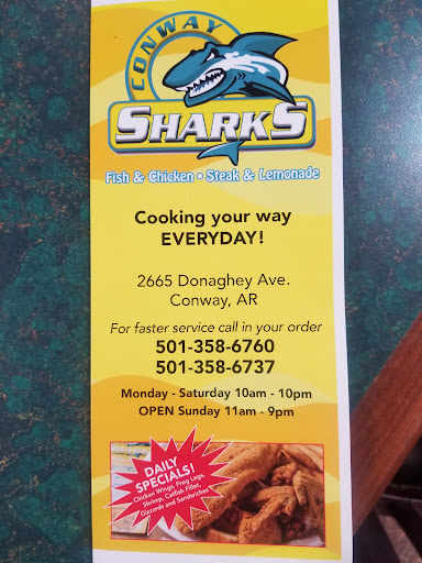 I hate sharks i went there to on 7-24-16 and i ordered the catfish steak there 2 part of the catfish steak the oval part n the horseshoe. Well i dnt eat the horseshoes part i love the oval as i was so nicely speaking to the manager which is Frank he did not nor willing to make his customer happy by replacing my order with the desire pieces i ask for. He began to get loud n harsh with me stating if i want that part of steak i have to pay him a dollar for up charge. But why when i already paid for steak he supposed to give me the steak part i ask for it steak is steak. He said with a mean voice way in front of a long line of customers arguing with his customer not willing to serve me with dignity n respect by replacing my order with the desired order. So we spent 25 mins in line exchanging words in front of many ppl in his business. Mr. Frank kept been rude toward me not only that mr. Frank is not a good manger or professional in business establishment. He continues to argue with me louder til he went and call the police on me i watied til they got there n made a complaint on mr. Frank n his poor business performance. I Charlie Jackson was told evenly by the police officer that he feel that i was right n he was wrong by the way i was treated there at Sharks here in conway ar he also suggested that i make a complaint here on his website cause he couldve handle this in a professional way by giving the customer his desired order. But instead he made leave his business with outreplacing my order n...