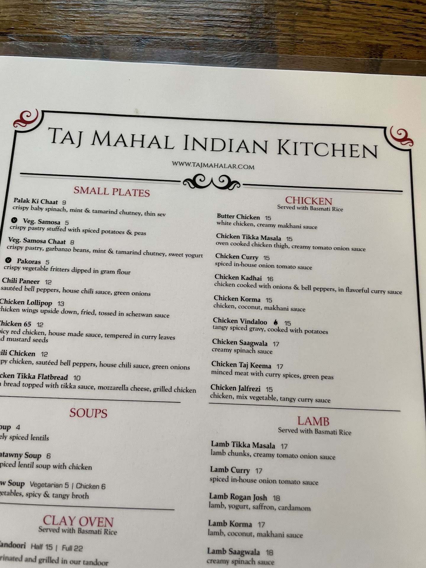 Read moreMy sister took me to this place for my birthday that my boss recommended seeing how we are new to the area and do not know very many good places to eat. We drove by and I remembered my boss saying how good it was. My sister said that she had been there and it was amazing! Of course we pull in..on a Thursday at 11 AM before a lunch crowd was pretty slow. First let me say this place does not look like much on the outside, but it is gorgeous on the inside. Very inviting... staff is super friendly. My sister ordered a couple appetizers for us both and I chose the mango shrimp curry for my entrée. The appetizers were off the chart Amazing…crispy fresh and delicious. My entrée was piping hot, full of flavor and the best curry I've ever had. She also ordered us two different naan breads from the menu even though our meal came with a complimentary plain naan bread. We got the rosemary and the kashmiri (has fruit and nuts) both so delicious. We were so full and took most of our meal to go, knowing we would not be able to finish it but we were embellishing for a celebration. Even though we “could not eat another bite” our waiter Kiran talked us into a little desert. Gulag Jamun fried pastry soaked in Honey and saffron. To die for 🤤... I can't wait to take my husband here. I 100% recommend. The only thumbs down for me was the restroom...even though it was clean, the stalls were broken and you had to lock the main door to go to the restroom or bring a look out buddy..hopefully they fix that soon. I'm ready...