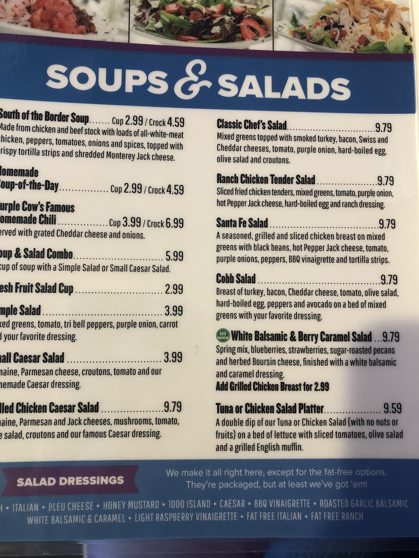 Read moreWe had a very inconsistent lunch visit on a rainy Monday. Our orders were taken pretty quickly. When our food soon came out, the white balsamic and caramel salad I ordered didn’t include the additional chicken I requested. I brought this up and the server apologized, saying it’d be about 5 minutes (it was more like 10). Meanwhile, my husband ate his steak knife smokehouse burger with fries and our son worked on his fries; their food was all good. My salad came out with the chicken, which was exceptionally good, especially with a drizzle of the unique and delicious dressing. I had to stop the server, though, to request napkins, which he hadn’t provided.