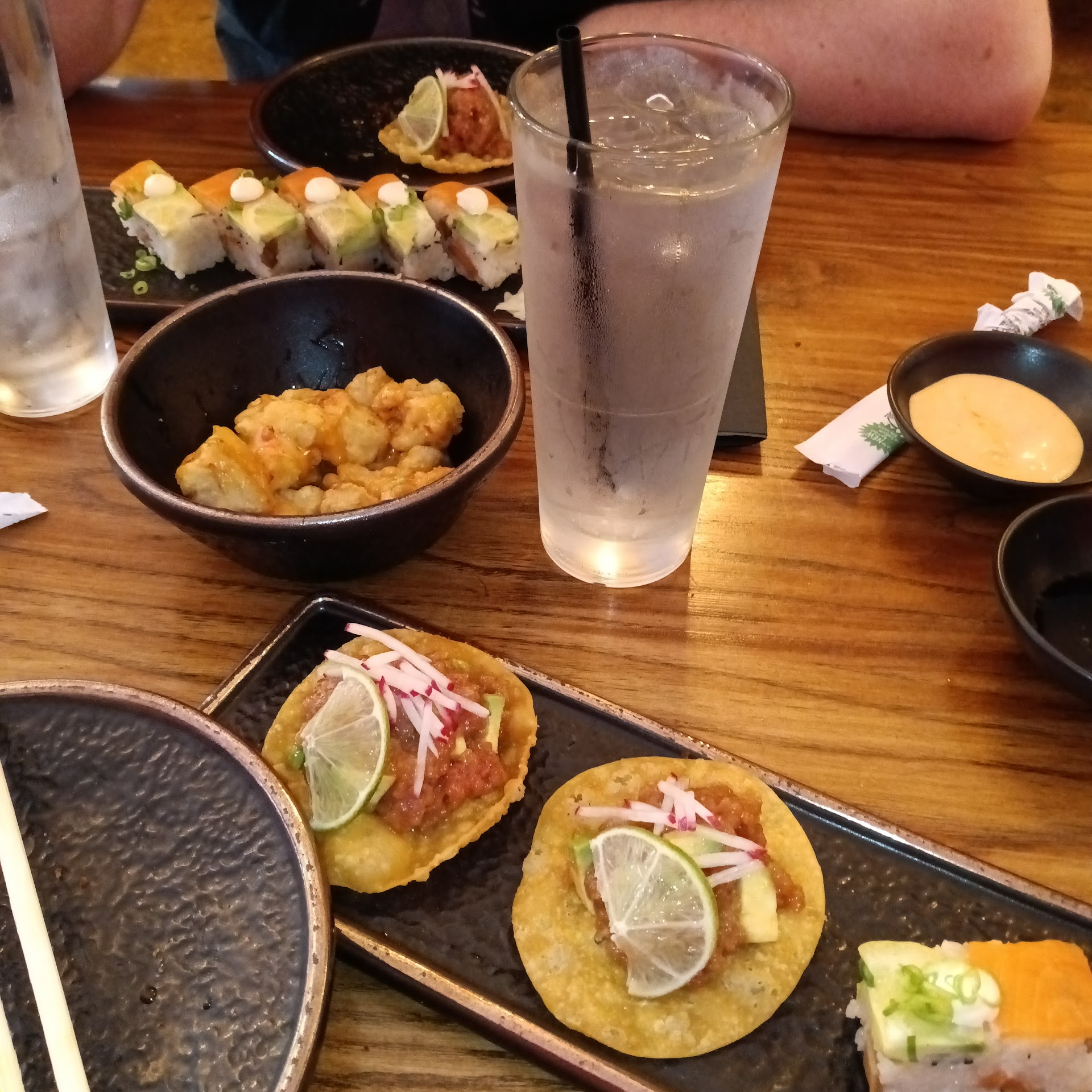 Read moreI never would have guessed but this restaurant definitely has an Asian bent to it's menu. Everything we ordered was delicious. We got the pressed spicy tuna sushi. It was beautiful to look at and to eat. There was a micro thin slice of fresh lemon on it, which absolutely popped the whole bite and made it fantastic. The only criticism would be that by my taste it had a little too much rice. But that's a personal preference. And I don't have to eat all of the rice, right? Next, we ordered the coconut shrimp. It was served with a sweet - hot chili sauce. It was pretty standard fare and I found it to be slightly overcooked as it was more brown than golden and the shrimp was a little bit rubbery. The grouper bites were, what can I say, grouper forward (in the best possible way). They were coated in a light tempura batter that stayed crispy. It was accompanied by a traditional bang bang sauce. It was delicious. I ordered the spicy tuna crispy wontons, which were fantastic. The chopped tuna was mixed with some form of seasoning, which I couldn't quite place. It was so complimentary. Also, there were little tiny slices of avocado embedded into the tuna and again the thinly sliced lime this time, sent the dish right over the top. I don't know how they did it but the wontons stayed crispy throughout the entire meal. That was far and away, my favorite dish of the meal.