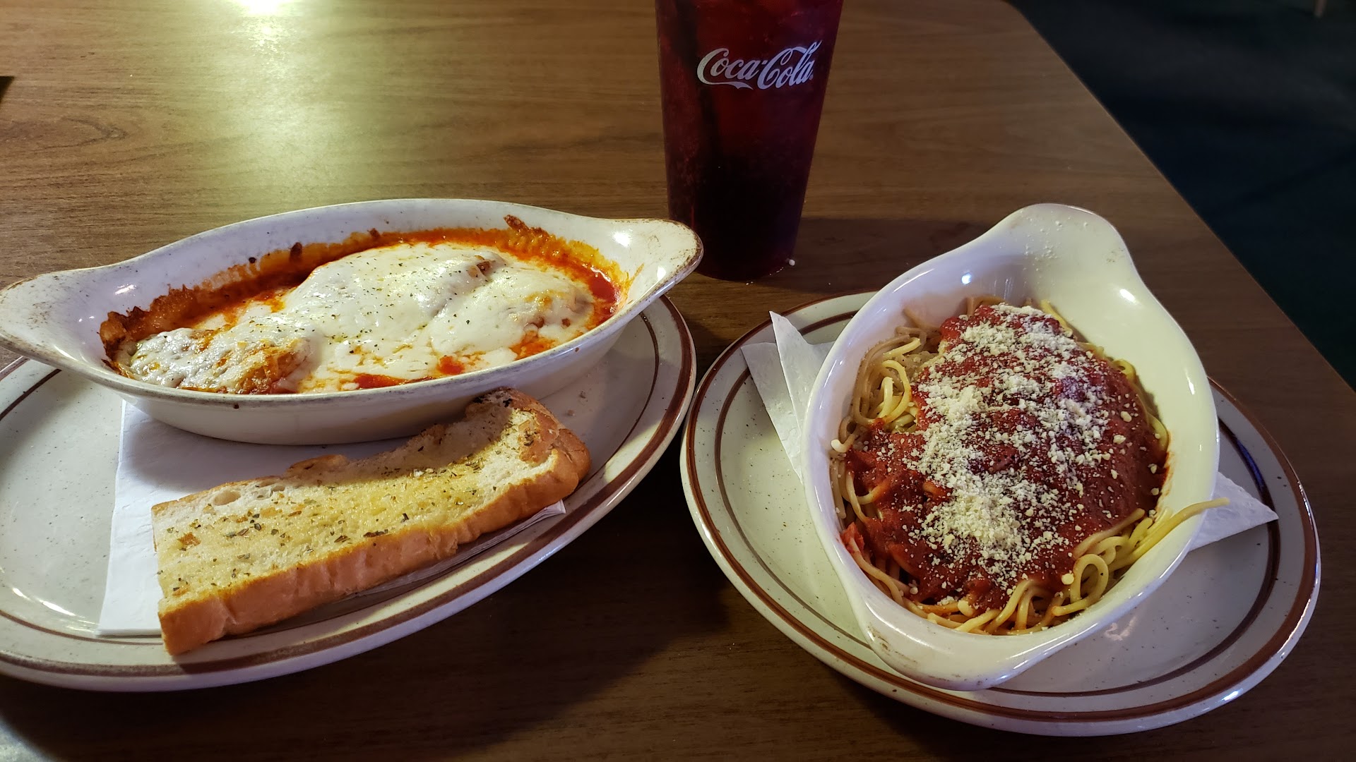 Read moreHad the Chicken Parmesan that comes with side of spaghetti and greek salad. The salad was very good. The Spaghetti and Chicken were kind of bland so had to add some extra pepper and parmesan cheese. Speaking of, their cheese was in "to go" packets, not a glass container like most places have. Could not taste any oregano or other seasonings in the sauce.