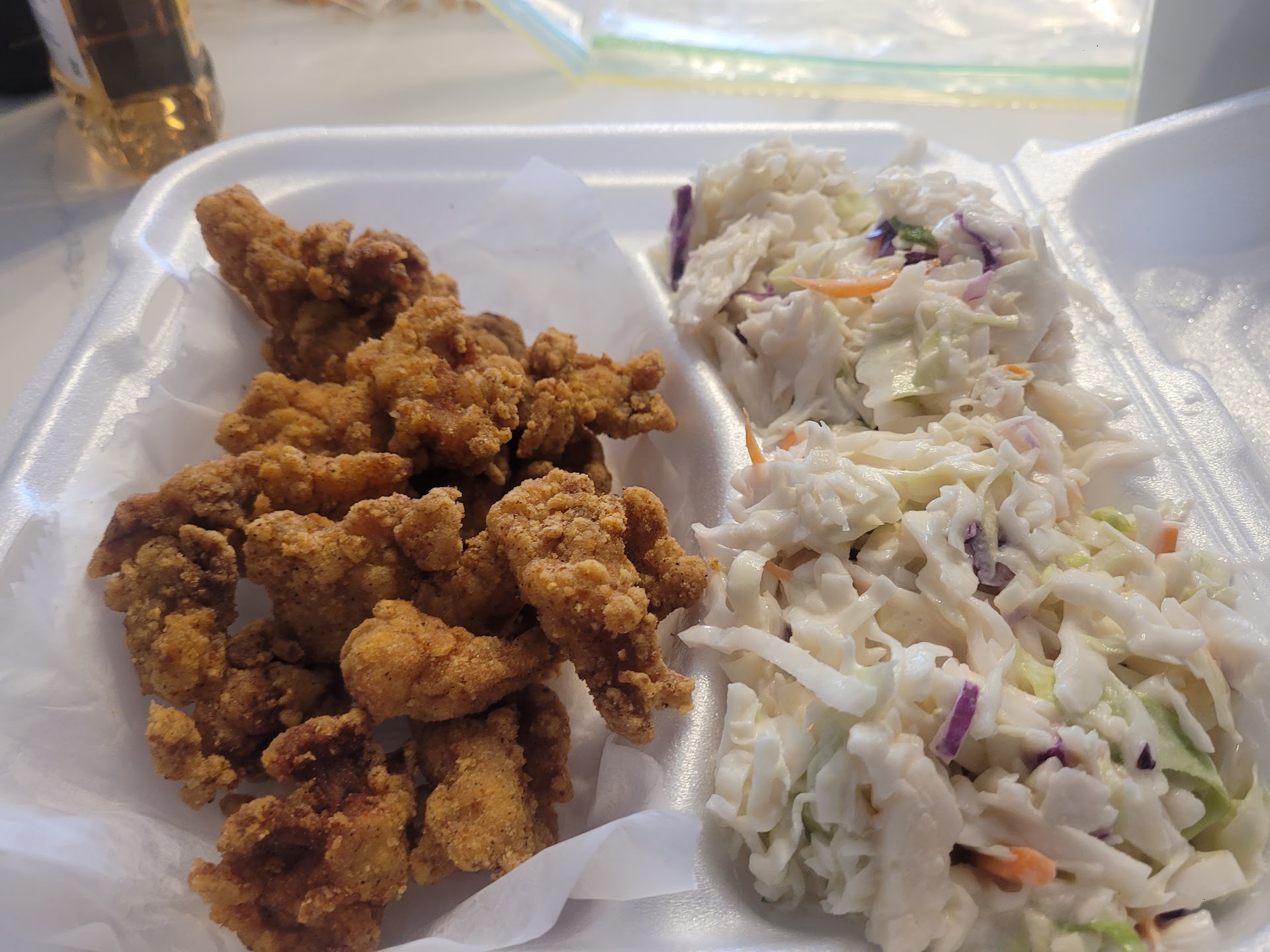 Ā Ā Ā Read moreLove this place. I hate to leave a semi bad review! Me and my family come here ALL the time for their fried swai, and we LOVE the alligator bites on occasion! So, alligator bites are 13.99, which used to only come with a box FILLED with alligator bites. Now, for some reason, all of the appetizers come with a side? So we get coleslaw, and it like the coleslaw is the main course!(as you will see in the attached photo)! It's like coleslaw and the sides are extra cheap, so they LOAD the box with the side, and give like 1/2 the alligator bites that typically come the order. I just feel that's a little janky trying to squeeze more of a profit. I mean, if i get a side of colesaw its pretty small, but they side of coleslaw for the appetizer is huge! You guys have great prices and great food, that is the reason why I come here because yall don't skim, don't become like everyone else! Customer satisfaction matters! Love you guys, but this...