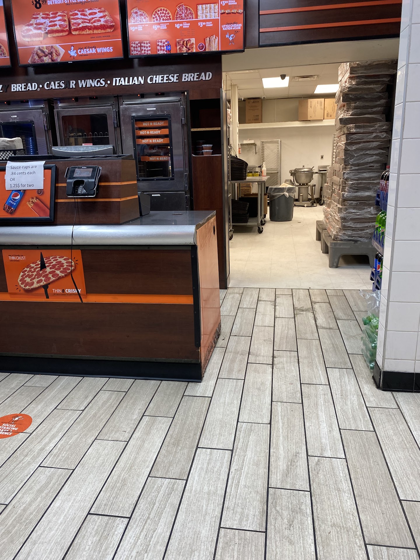 Read moreAll I had was a Classic Pepperoni and Crazy Bread. They said they would make fresh crazy bread so I went to the store and came back and it wasn't in the oven yet... They just told me that "It was coming" but I know it wasn't in yet, because if their reaction when I walked back in 20mins later. I don't say anything because I'm a patient guy and I understand that its Friday Night. Now, as they put the bread in, I step to the side and wait, but also observe the back area where the pizza is made. That's one important thing I do. (I don't stare and observe creepily, obviously) and I notice that the pizza maker isn't wearing gloves! and they're putting numerous toppings on the pizza. I thought it was just clear latex gloves, but there were nothing. Even if there's the argument that "They wash their hands before touching pizza" well, my family is Vegetarian besides me and with lots of customers ordering pepperoni, sausage, ham, etc pizza, there's meat on their hands, which is cross contamination onto the veggies, which my family is eating. I've worked behind many fast food counter, and even though they are cheap, they still need to be sanitary. I had to order my family veggie pizza from Dominos...