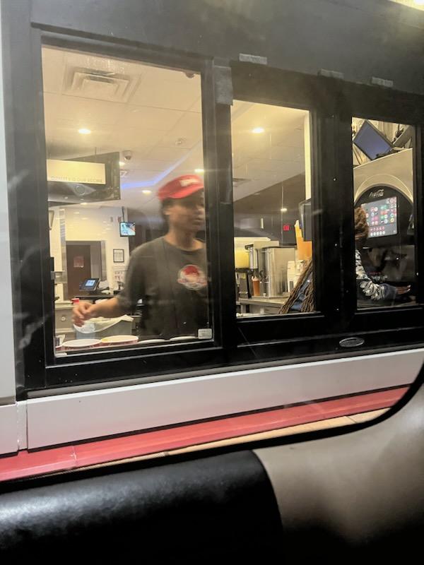 Read more7/8/2024 10:31pm is when I came in last night. I did a mobile order for a burger n fries. When I pulled up to the 1st window the young girl with the headset on was too busy on her phone laughing and being so far engaged that she didn't even open her window to acknowledge me. So as I was pulling to the second window there's an arm sticking out holding my bag so I sped up to get it and the boy says have a good night n shut the window. I had to check to make sure my food was in there. When I was pulling out I noticed my fries were cold n stuck together n my burger wasn't done all the way. When I circled back n told them the chubby boy that was sweating heavily n very unsanitary made a smart remark and said "yeah because you were gone 10 minutes " I had to make the other boy open the window back up so I could check him n make sure he did not remake my order. They were adamant about me pulling forward so they could bring it out but I pointed out there were no other cars behind me n I rather watch my food being made. Then the other boy in drive through tried to block my view had to tell him to move. Then he tried to throw away my receipt and when I asked for it back tried to make excuses when he was finally handing it back he was trembling n he should because I will be using it to make a complaint to not only corporate but to the health department. Nobody should be sweating over food without at least a hat and should not be serving cold and undercooked food! Will never...