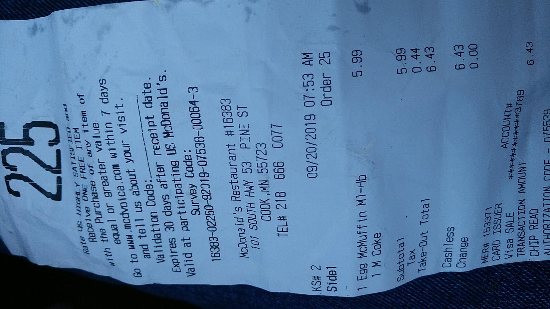 Read moreI stop at McDonalds thru out the US at least ten times per week. I love the coffee. The McDonald’s in Cook is far and away the worst managed of any I have been to. In theses days of take out only I can’t believe you can’t figure it out. This is not rocket science this very simple hire somebody that can manage it . You get what you pay fore. To the owner please sit across from your store and time and watch. Today I sat for eight minutes second from the delivery window waiting for coffee and coke,They should have moved the person to the waiting area. I had been in line for fifteen minutes. Again...