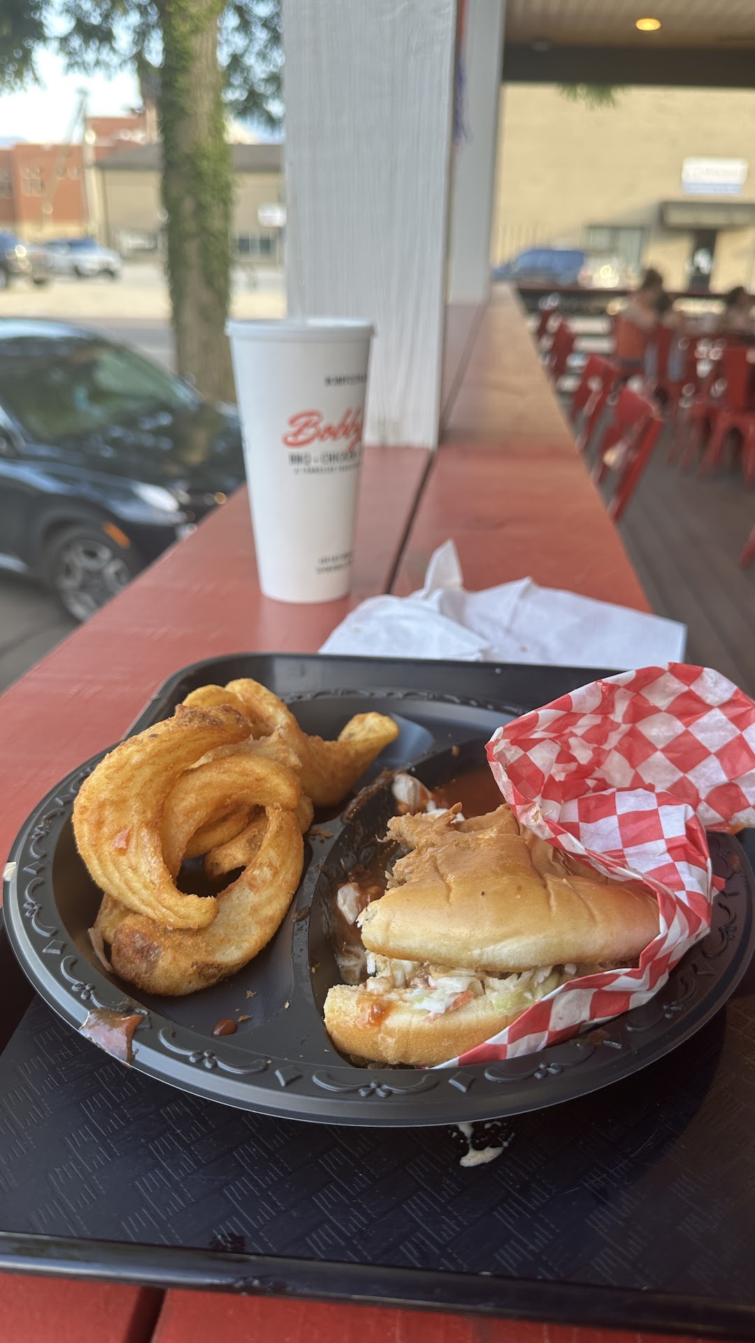 Read moreThis review is very equal for me, and will be updated at a later day. We visited the nunder new ownership location on their second day of opening. The new decor is beautiful and appealing! However I just don't think they have it figured out quiet yet. We did find some hair in our food. The banana pudding just wasn't what it use to be. The fish was amazing and fresh and didn't have that "fishy" taste We all hate. Service was a little slow but this is expected with a new open. The corn pudding was great, as well as the okra! My son had the chicken legs but I would like to see a great kids menu at this location. The pool slaw unfortunately just wasn't the same. We will be returning at a later date when hopefully they have everything figured out. It was a great lunch but maybe we had our expectations way to high. Also to the staff, while I was there a very rude customer approached the counter and you handled it beautifully. Don't let rude people bring you down! I see great things for this place once you are rolling! However it will never be the bobby qs we all use to know and love but I'm open to a new level for...