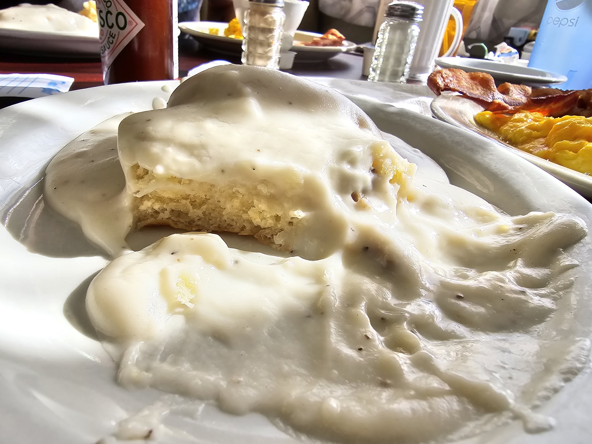 Updated 4-5-2025 I ate here again on 4-3-2025 and was appalled, this will be my last time to eat here. I ordered gravy and biscuits. The biscuits were day old and had been warmed up in a microwave. How do I know? I've tried warming up biscuits in a microwave before. They were wrinkled and dried out, the edges were so hard they were unbeatable. Warming up any type of bread in a microwave will cause it to become hard. Then there were ants crawling on the walls, window seal and table. I fail to understand the draw of this place, it is a health hazard.