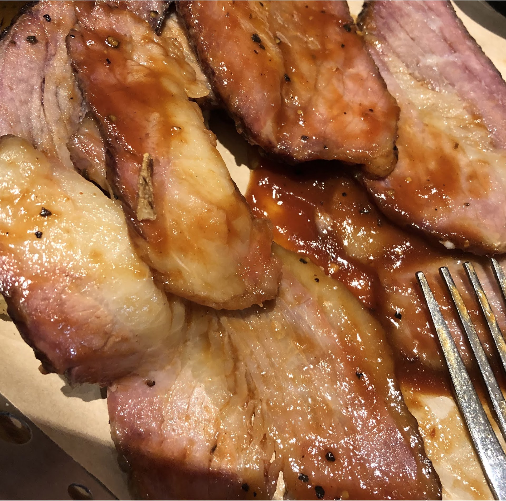 The first thing we noticed on the entree was that the corn was essentially cold... not even warm enough to melt the congealed "sauce(?)" they use to dress up the most basic of side dishes. Our waitress came back to ask if we needed anything else, and when we mentioned the cold corn, she sighed, and said she would "go get the manager." Said manager came to the table and defended the mystery "corn sauce" by claiming it "comes that way" (cold!) and offered to microwave a fresh piece and comp us the cost of the chips. And off he ran... In his temporary absence, we discovered that the fries were piping hot; the brisket, not so much. The manager delivered more corn and left in a flurry... not once uttering the simple words: "I'm sorry." Closer examination of the brisket revealed shiny white slices of mostly fat surrounded by a hint of actual meat, piled on top of a soggy piece of Texas toast. The chef evidently thought an ample squirt of bbq sauce would hide the nastier slices. Guess again. In vain, we tried to dig deeper and find actual meat. A single taste was enough to completely lose ones appetite, so the remainder of our short stay was spent staring in disgust at our barely touched food.