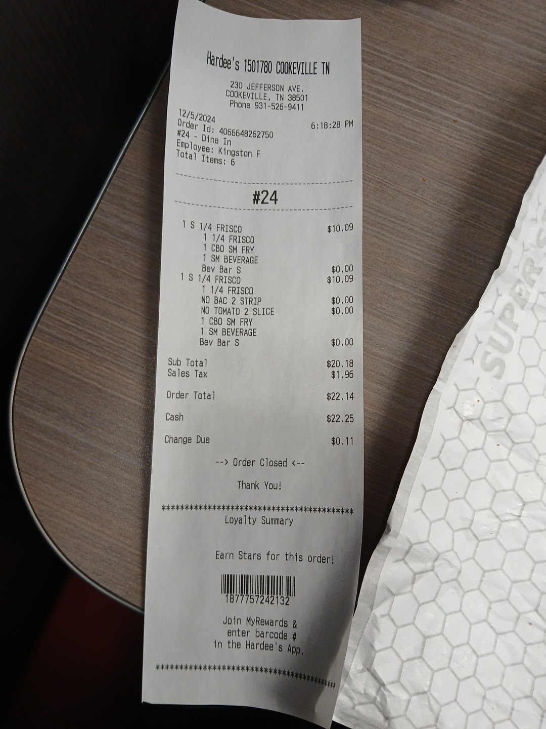 I have to say I extremely disappointed with the experience I had today from the lunch menu. I have been to this location (S. Jefferson in Cookeville, Tn) for the breakfast menu several times, never had a complaint. We decided to try the new primal burger and the entire experience has been horrible. So we had 2 primal burgers, regular burger and fries with a order of onion rings on the side. What to start with.......... The onion rings they put on the burger were so hard I couldn't even bite through it. The fries were so soggy the bag they were in was saturated in oil. Almost like the oil wasnt hot and they just sat in it forever. When I called and talked to the manager of the store all she had to tell me every time I mentioned something was we just dropped them so I know they were fresh but in the same conversation said they sat on the warmer for awhile before being put on the burger. Never once did she offer to make it right !!!! Apologized, but told me she knew it was good. How can it be good when YOUR customer has told you it was horrible ?? Tried to charge me 46 dollars and when asked why the heck it was that high realized she charged an extra burger... Now, seems to me the whole thing was a joke ..After the price was corrected it was 27 dollars for a meal except for the original burger was all thrown in the trash....that's how bad it was !!!!!!...