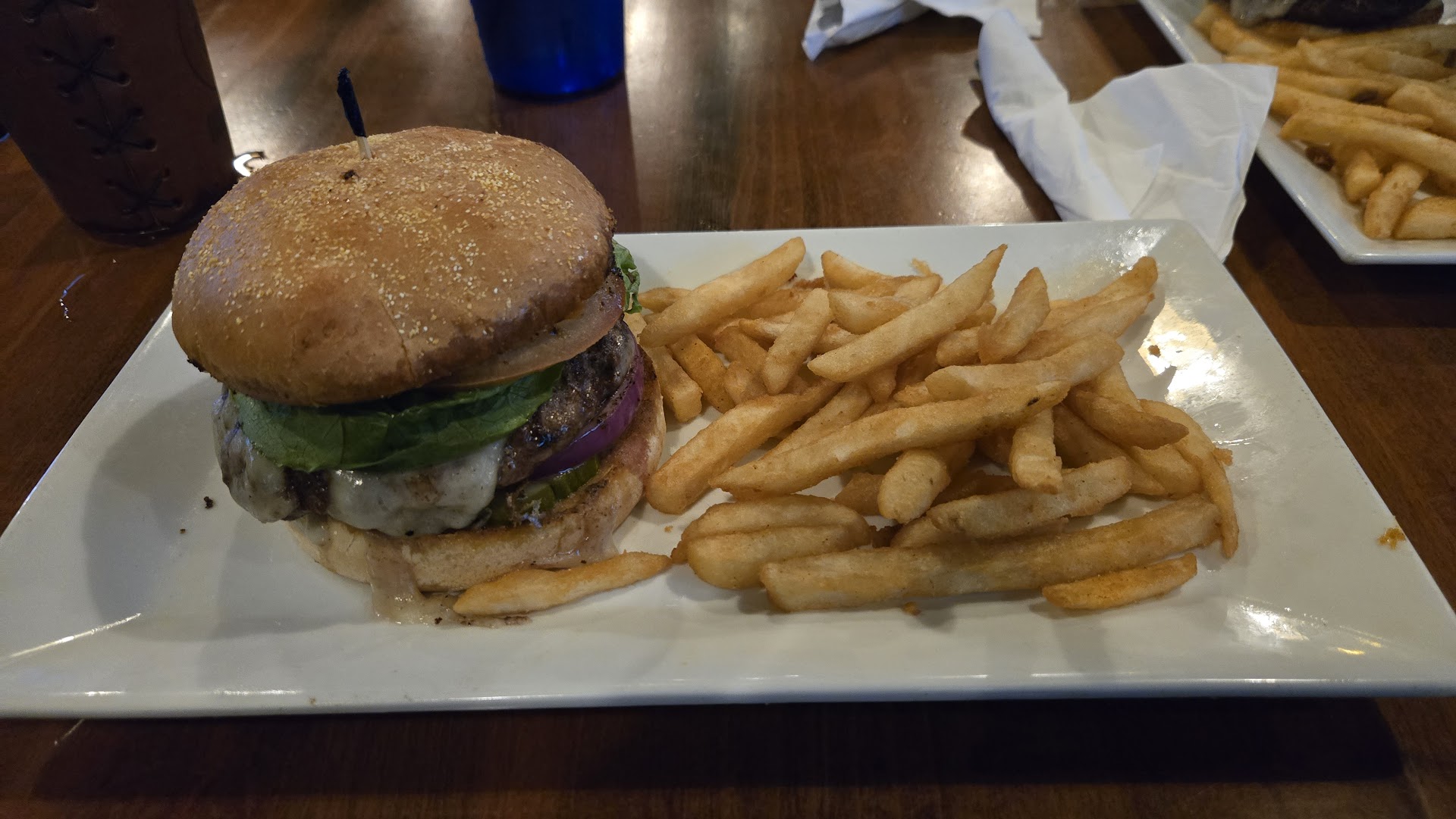 Decor is your standard pub decor with TV's in most places that would offer decent viewing if that is what your wanting. The bar offerings seem decent, the local Calf Killer Brewing and a selection from around the country on tap and your standard American macros in bottles. The food menu at lunch time seems to be designed for ease/speed, from a grilled cheese sandwich to the classic burger and fries. They also offer a loaded french fry basket that was not bad at all. Over all the food is what you would expect from bar service. It's decent, hot & will fill your stomach for under a ten spot if your own your own.