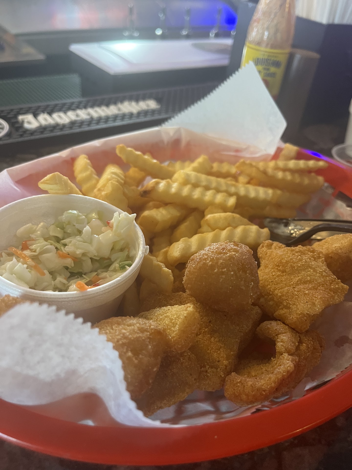 Read moreGranny wont go in the buildin with me cause she says lose women and playin cards aint for the meek. But i love em! Gotta try a John Dog and the Catfish sammich....well i bit into one of em on grannies friday night bingo splurge. I loved that bute of fish so good...well poor old granny, well i kmocked her silly out of pure nervous reaction. That damn thing is good but granny better...
