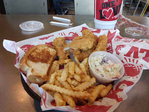 Let's get the positive part over first.....The drinks were spot on. The sweet tea, the root beer and Coke Zero were flawless. The only food they serve, their famous "Chicken Fingers", although decent (barely), were unremarkable and had nothing to set them apart from any old ordinary chicken tenders. In fact, they lacked seasoning and were quite bland but were at least edible. That isp the only reason they are even getting a one star (a zero is more fitting). Now, for the real reason for such a low review. For starters, how can a place with ONLY chicken tenders on their menu just have two sauces for dipping? The first one, their "signature sauce" was nothing more than ketchup, mayo & hot sauce and was gross at best. It was however, better than the other sauce; a thin and runny honey mustard that tasted like it had horseradish in it. When you have a family that doesn't like virtually anything with mayo, hotsauce or horseradish in it, it makes for a very unpleasant experience. Not only that, but if you want honey mustard in a kids meal, you have to pay extra for a tiny cup of it. Why in the heck wouldn't they offer a BBQ or sweet n sour or ranch dipping sauce? So dumb. The slaw that came with the meal (which by the way is the ONLY side they offer besides fries) was bland and pretty much like eating plain shredded cabbage. The fries were perhaps the worst fries I've ever eaten in my life. Not one fry was over 1 1/2" long. Most were less than an inch. They were supposed to be center cut crinkle style fries but were thin and flimsy. They were grease logged, and soggy with stale oil that tasted like it hadn't been changed since the place first opened. The people who voted this place #1 chicken place obviously have never eaten chicken anywhere prior, because this one ranks, in my opinion, as #1 alright, but #1 worst chicken place I've ever been to. To add to this seemingly endless page of negativity, I have to say that none of us felt well after eating here with multiple stomach issues hitting us about as soon as the nasty food hit...