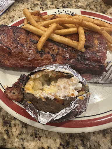 Read moreIf I could give 0 stars I would, there was absolutely nothing good about this place. Shouldâve left from the get go. Once we walked in the door there was 3 different employees walk by us, we had 3 in our party, one employee walked to the computer at the entrance, no one and I mean NO-ONE acknowledged us standing there. We stood there for 10 mins before someone finally came and asked how many they werenât even busy, my husband even checked in on the kiosk, then when we were seated the lady couldnât even let my husband sit down before she basically pushed her way past him. Then after we ordered and got our food. The Okra was good, but the brisket was dry, the Mac and cheese had to much pepper it burned my mouth, the loaded baked potato was dry. The waitress never came and refilled my drink. My husband got the rack and a half of ribs, they were dry and tough, his beans tasted burnt and he had the same complaints of the max and cheese, his friend which this was a dinner for his birthday he got the brisket that he didnât eat either he said it was thought and dry, his beans were burnt and his Mac and cheese had to much pepper as well. I left all the food on my plate, and yet still got charged for it. The waitress even seen I didnât eat. Donât waist your time...