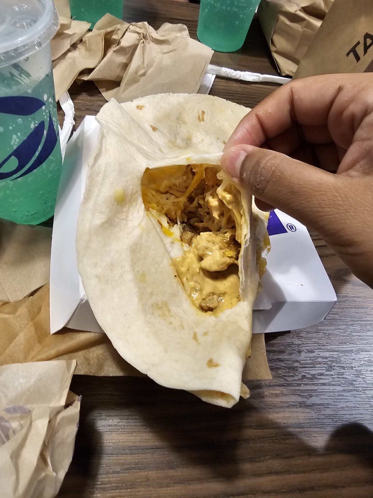 IF my wife was posting this she would have five stars and wonderful things to say because I swear she can eat Taco Bell for breakfast lunch and dinner every day for the rest of her life and be quite content. I also am a fan of Taco Bell I even used to manage one or actually several some years ago but it's to me all the same stuff put in different forms so generally you're going to get pretty much the same flavors and textures just in different shapes. I mean that's okay and all but I'm just calling it what it is...an American version of Mexican food setup to be fast and cost effective. Since I was a manager for the newer "bold choice" designed Taco bells for a few years let me express some insider thoughts... During some are GM conference seminars they were comparing Taco Bell's drive-through speeds to that of McDonald's and wanted to achieve the same or better speeds but they gave you nearly a third of the people to do it with also they set their productivity rate for the employees when you're writing a schedule to 105% or at least back several years ago, which meant thateach employee was to be doing 100% of their position while on the clock and 5% of a different position which equals insanity. That's why for the most part I haven't worked there since because that's crazy! If you got 80- 85% out of an employee you have a a+ star employee. Just food for thought so next time you go into one and you want to criticize just remember in some cases it's not necessarily their fault but more of the expectations that are...