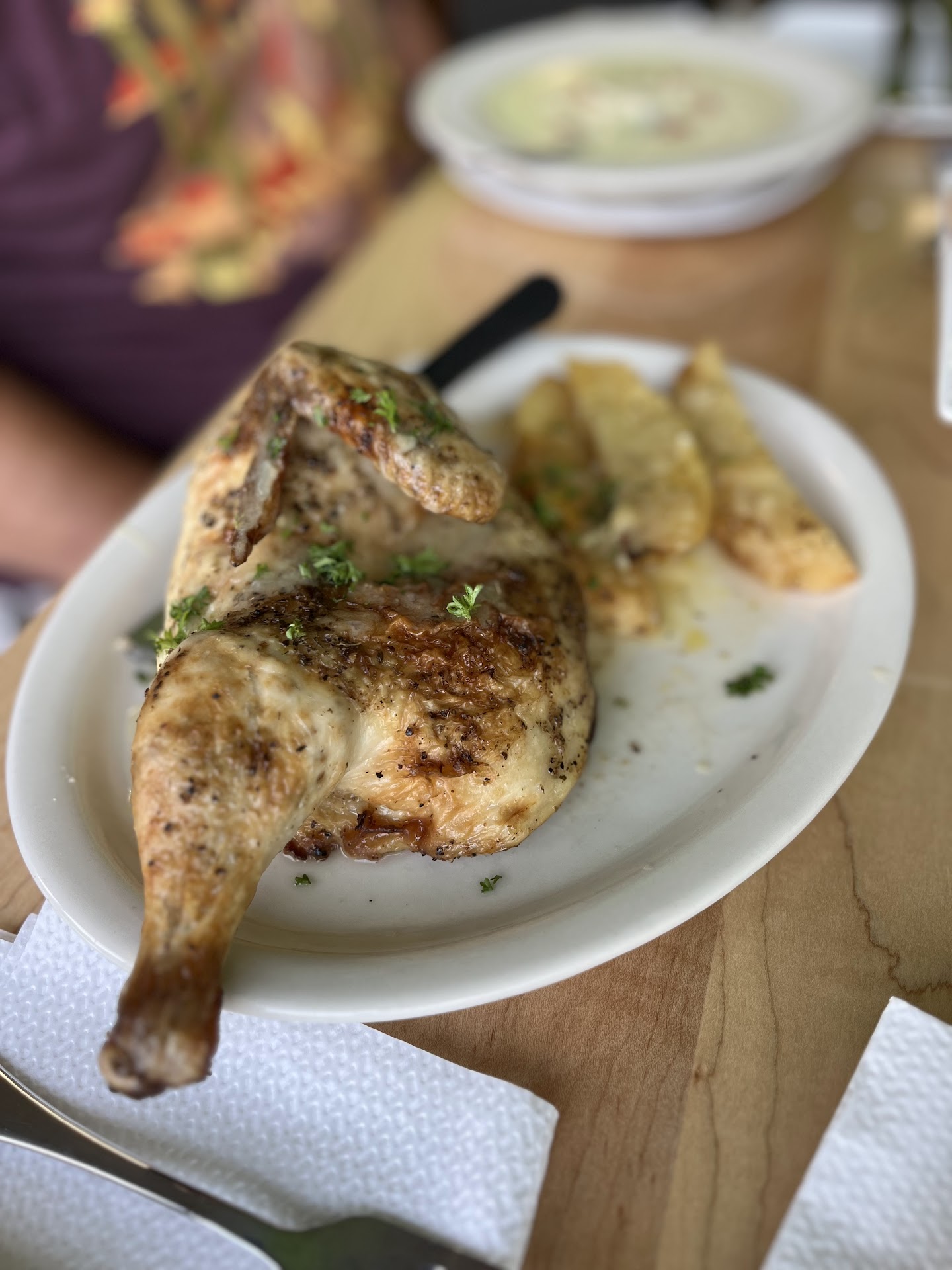 They gave us pita bread, hummus, and tzatziki, all homemade and delicious on the house. Not sure if this is always the case, but it would be great to always include with meals like chips and salsa at Mexican restaurants.